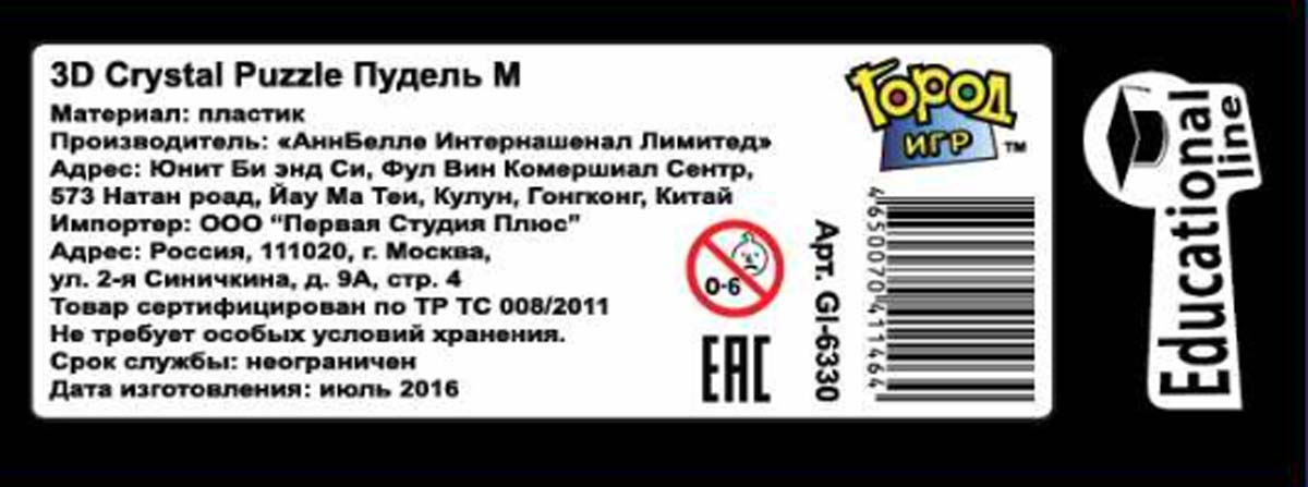 3D Пазл Город игр "Пудель", GI-6330, 21 элемент