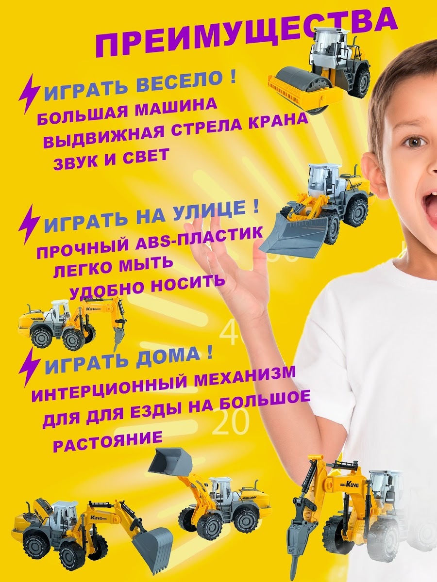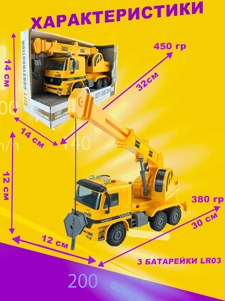 Машинка инерционная, Город Игр, IQ Boy, Car, Build, Sand, Грузовик Кран, Звук, Свет