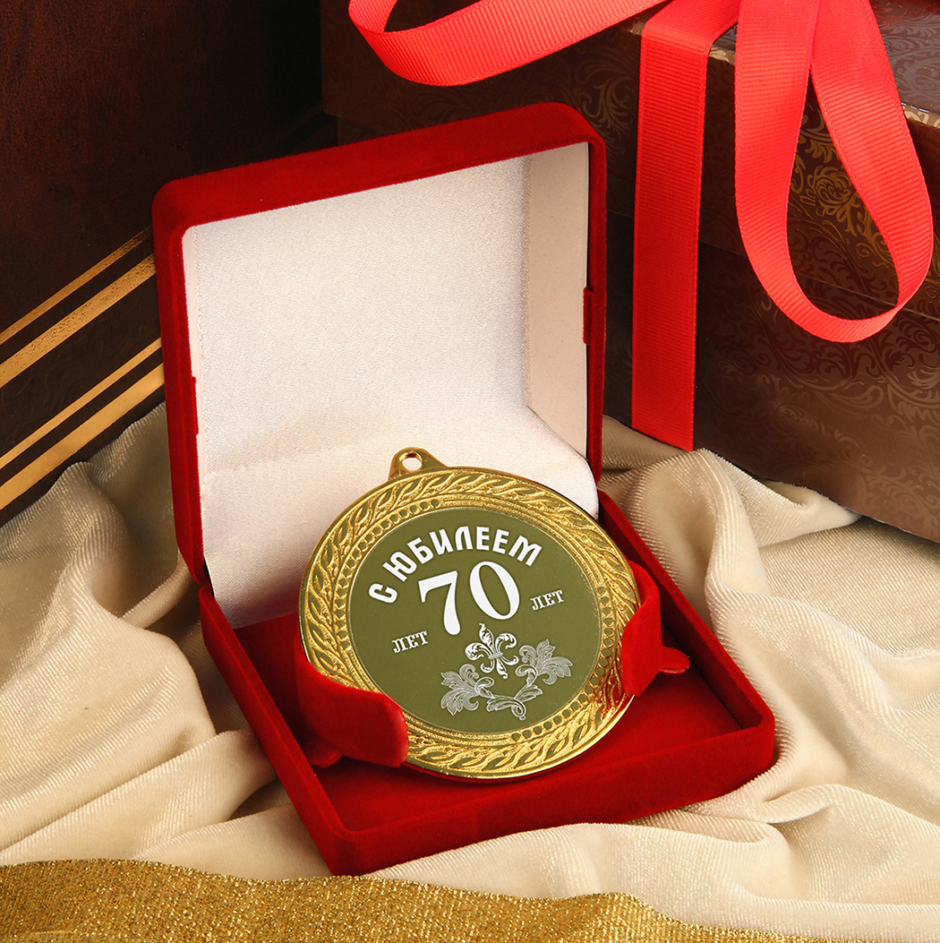 Медаль подарочная " С Юбилеем 70 лет" в подарочном футляре