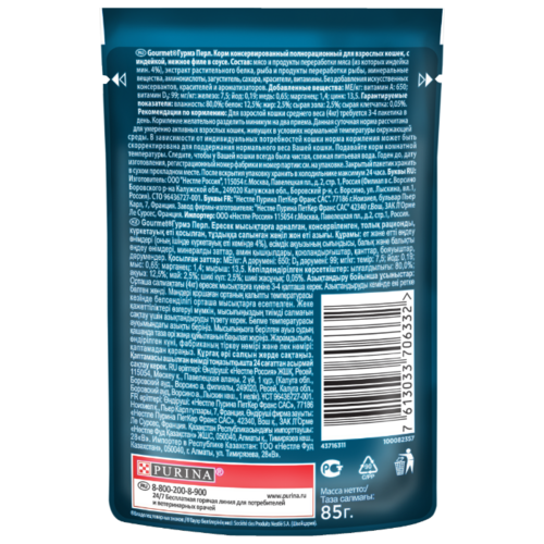 Корм для кошек Gourmet Перл беззерновой, с индейкой 85 г (кусочки в соусе)