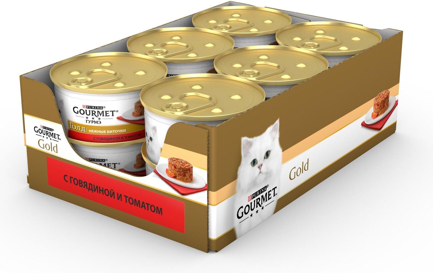 Влажный корм для кошек Gourmet Gold, кусочки с говядиной и томатом, 12 х 85 г