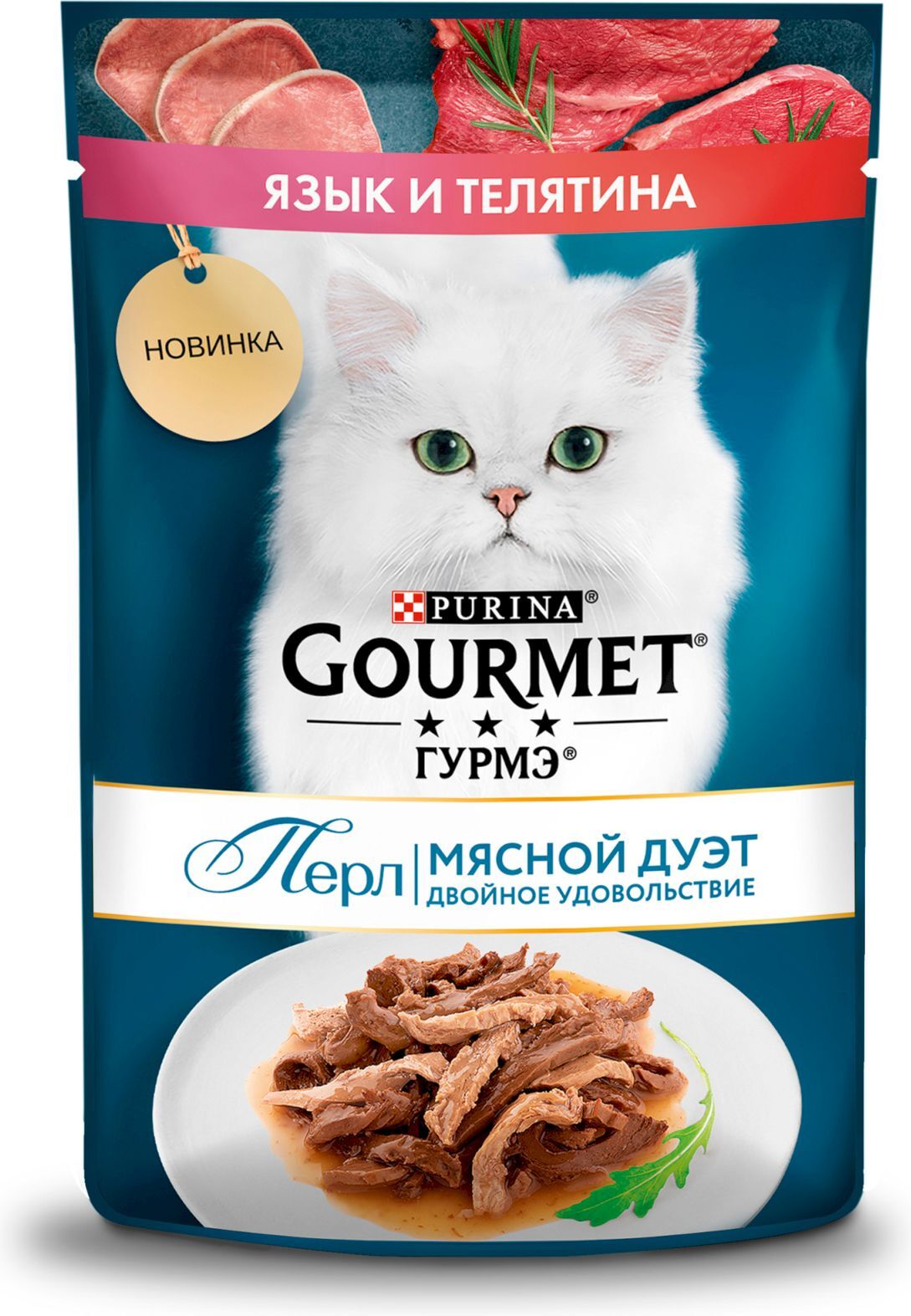 Влажный корм для кошек Gourmet Перл Мясной Дуэт, с языком и телятиной, 75 г x 26 шт