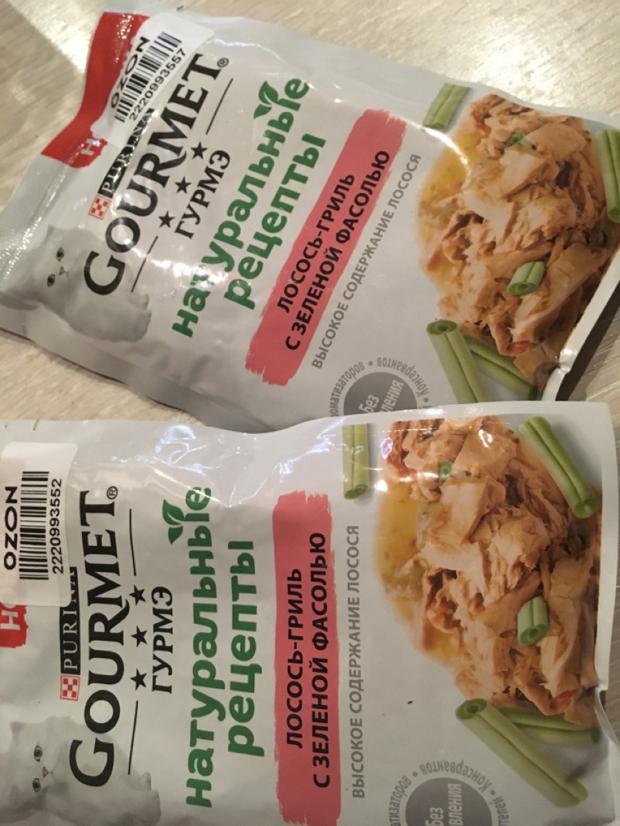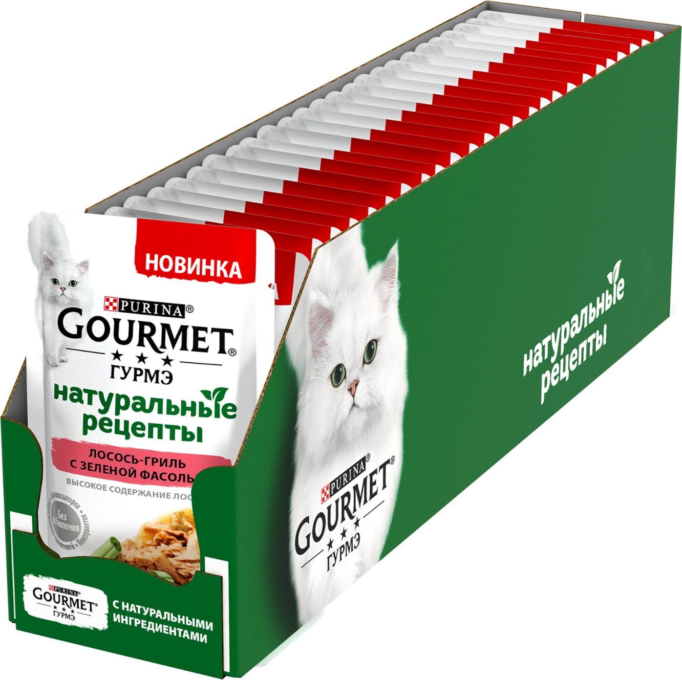 Влажный корм для кошек Gourmet, лосось-гриль с зеленой фасолью кусочки в соусе, 26 х 75 г