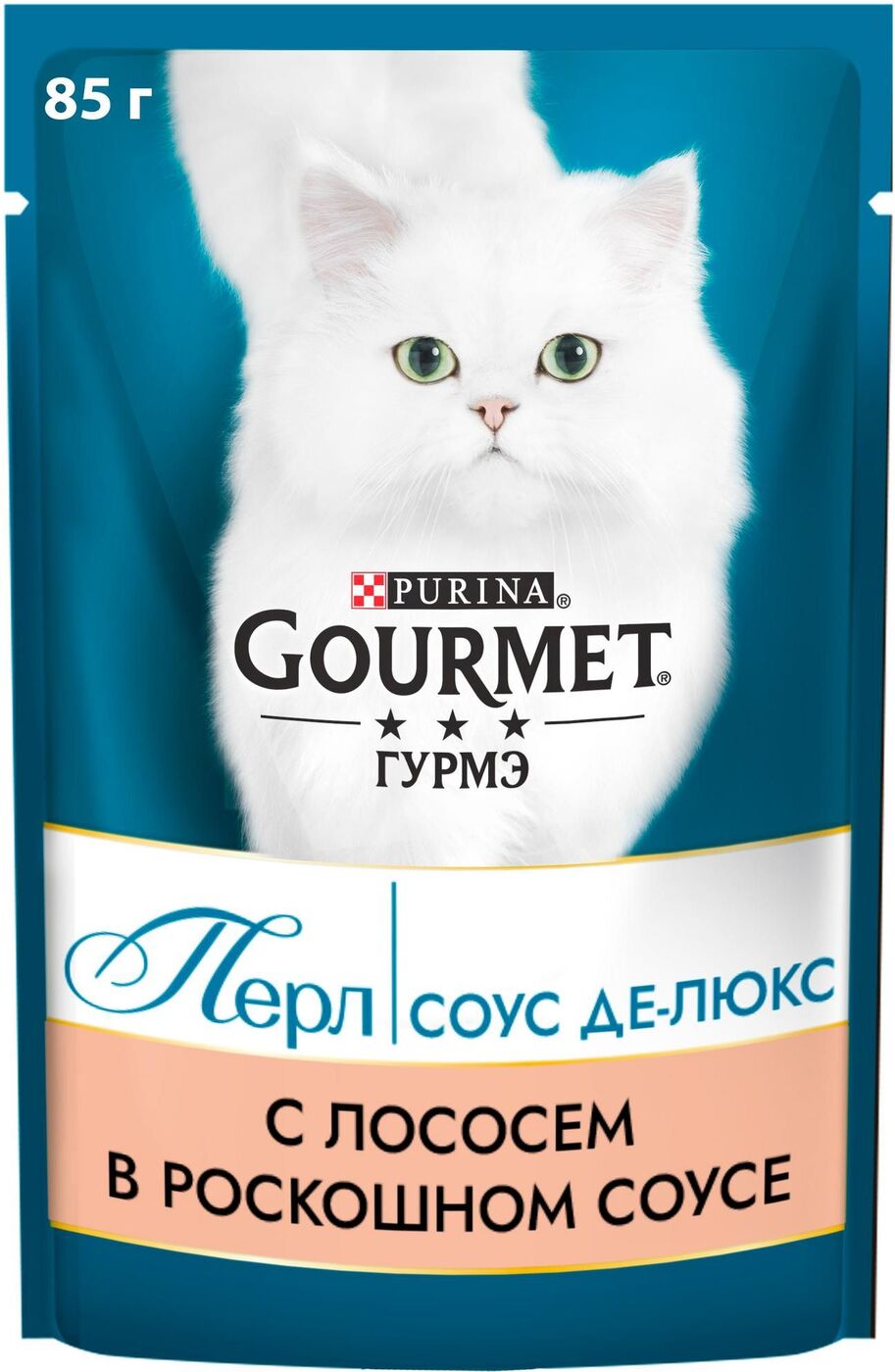 Влажный корм Gourmet Перл Соус Де-люкс для кошек, с лососем в роскошном соусе, 24 шт х 85 г, Лосось