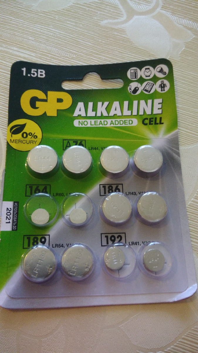 Батарейки щелочные GP Alkaline, типы LR44, LR60, LR34, LR43 и LR41, 1.5В, 12шт