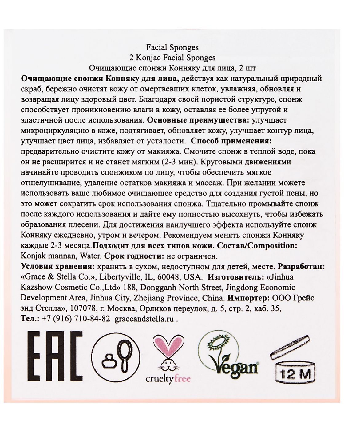Grace and Stella Спонж конняку конжаковый для умывания, набор 2 шт. USA Original Product.