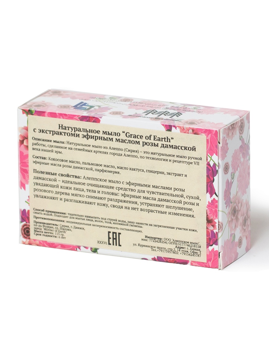 Grace of Earth натуральное мыло ручной работы с экстрактом и маслом дамасской розы 115 г картонная коробка