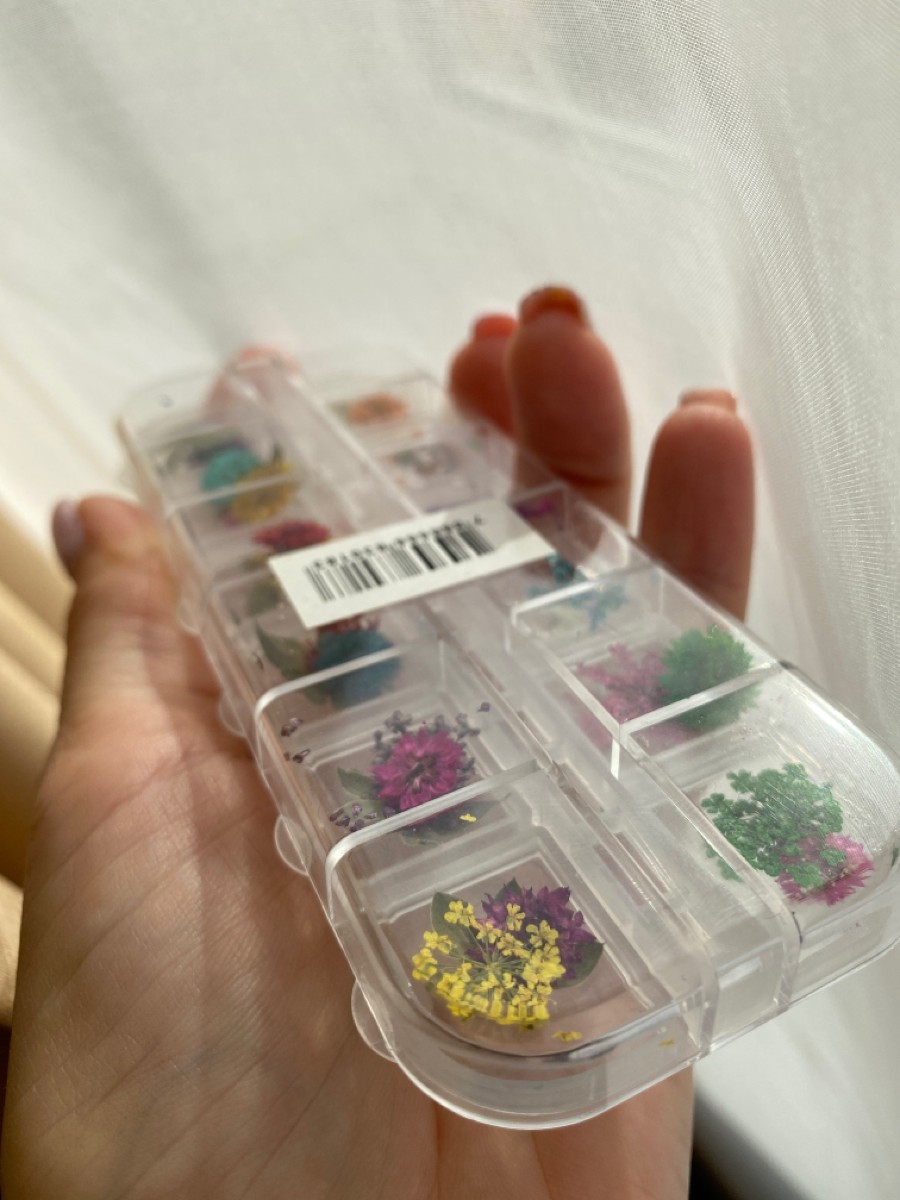 Сухоцветы для дизайна ногтей D 1-2 см. + пластиковый кейс, 12 шт., набор.