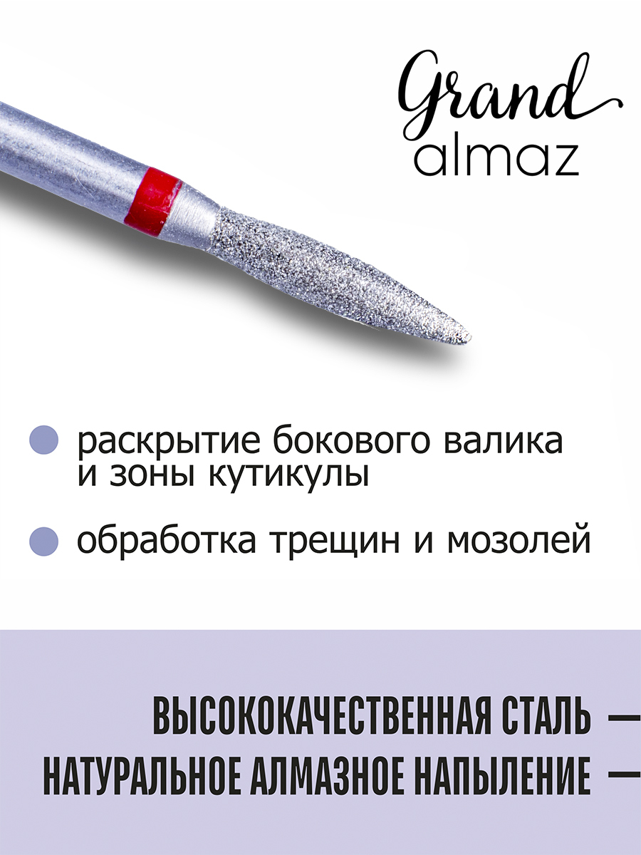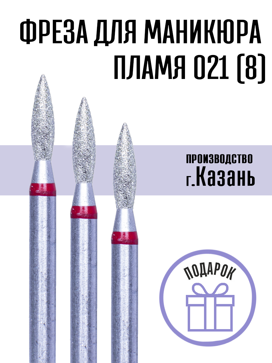 Алмазные фрезы Пламя 021 (8), красная, диаметр 2.1 мм, длина 8 мм, 3 шт, производство Казань