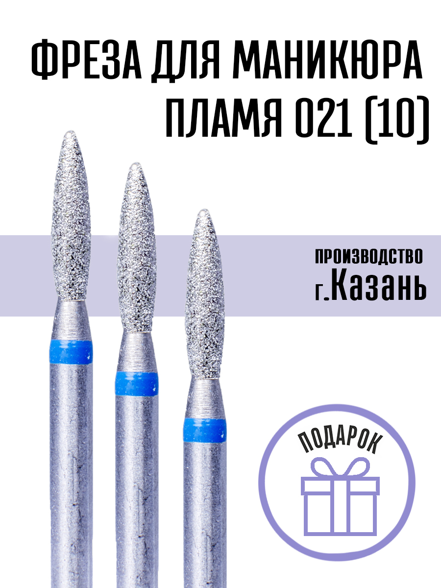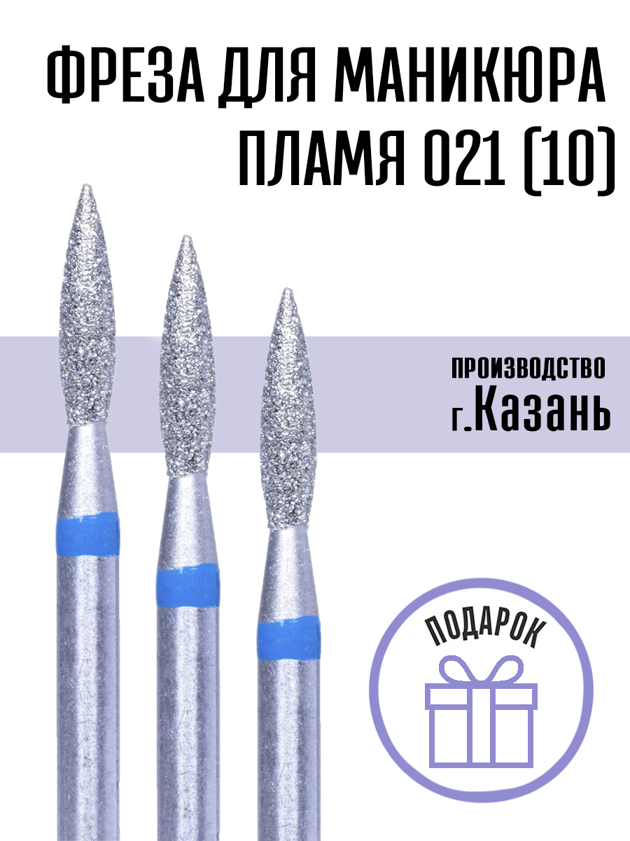 Алмазные фрезы Пламя 021 (10), синяя, диаметр 2.1 мм, длина 10 мм, 3 шт, производство Казань