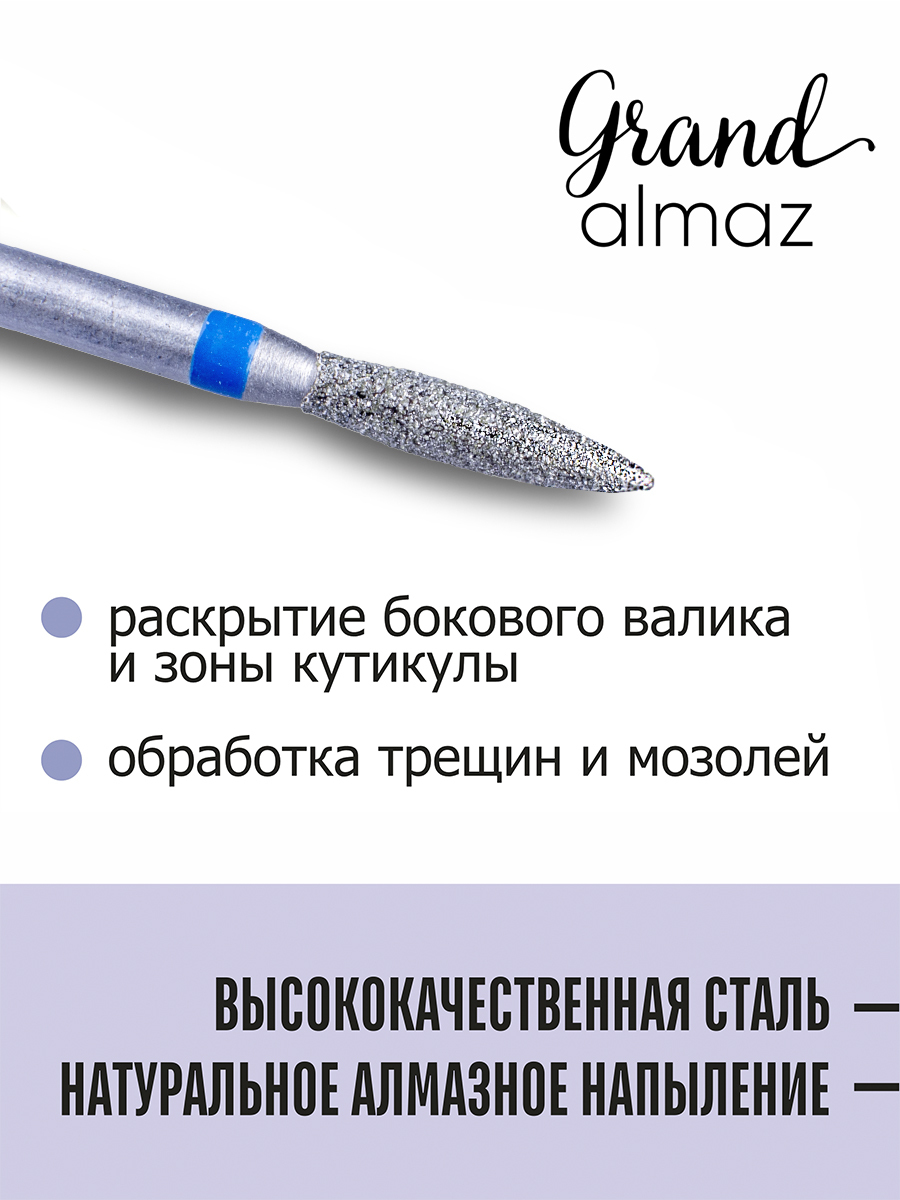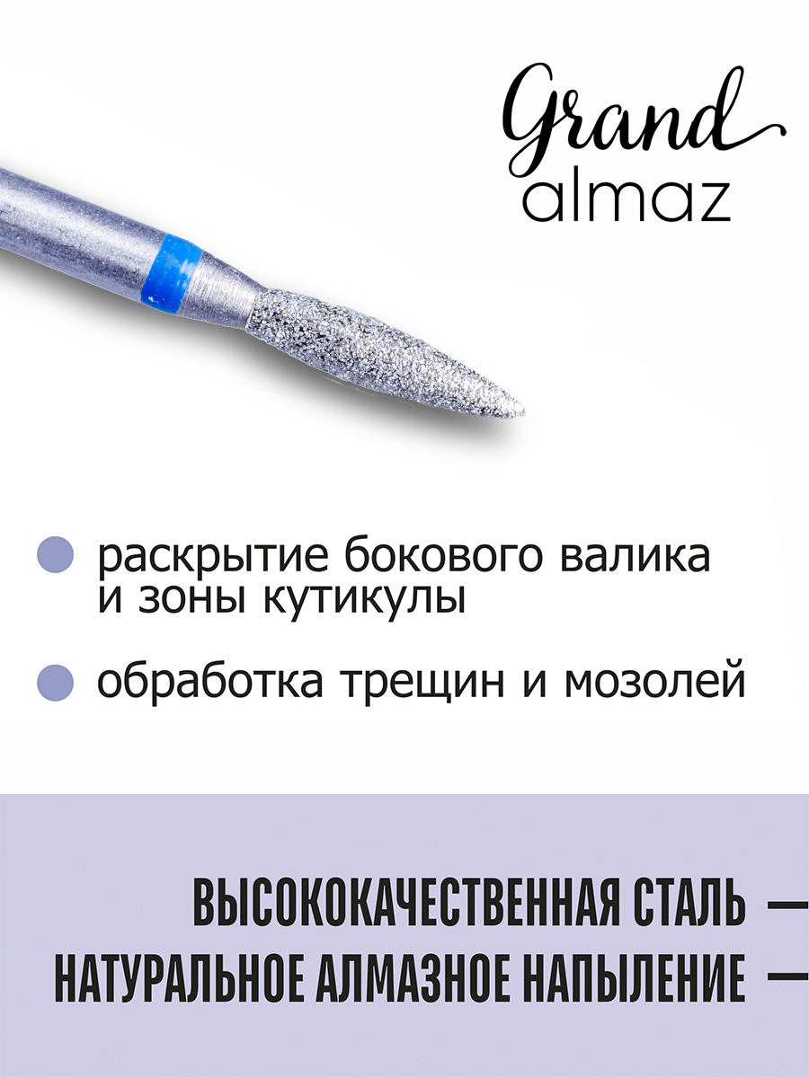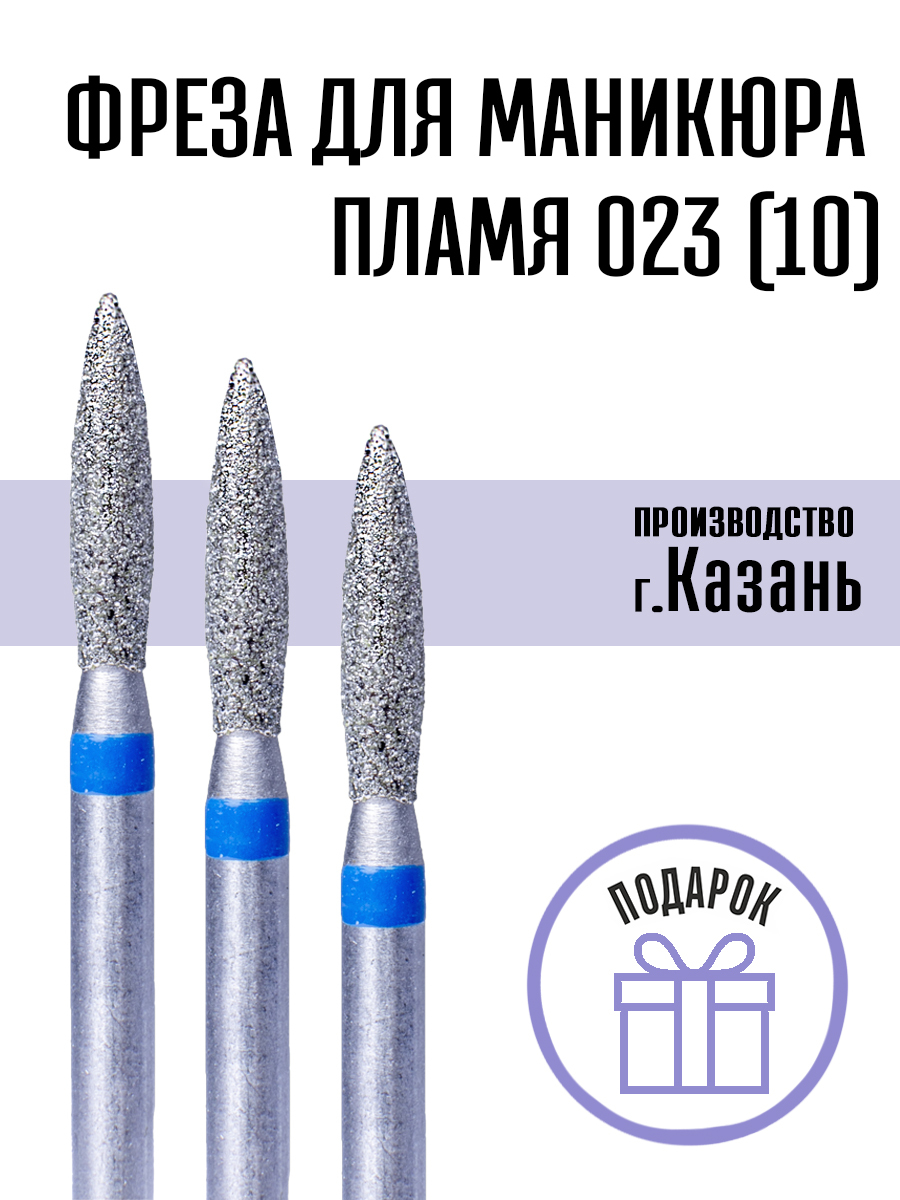 Алмазные фрезы Пламя 023 (8), синяя, диаметр 2.3 мм, длина 8 мм, 3 шт, производство Казань