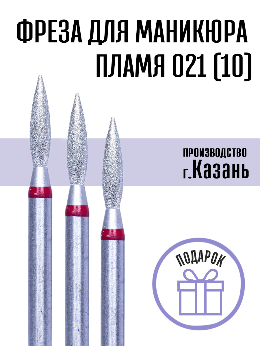 Алмазные фрезы Пламя 021 (10), красная, диаметр 2.1 мм, длина 10 мм, 3 шт, производство Казань
