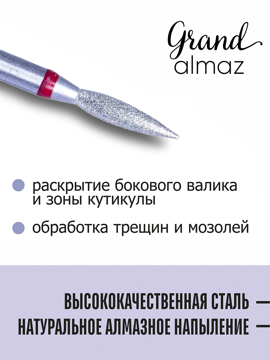 Алмазные фрезы Пламя 023 (10), красная, диаметр 2.3 мм, длина 10 мм, 3 шт, производство Казань