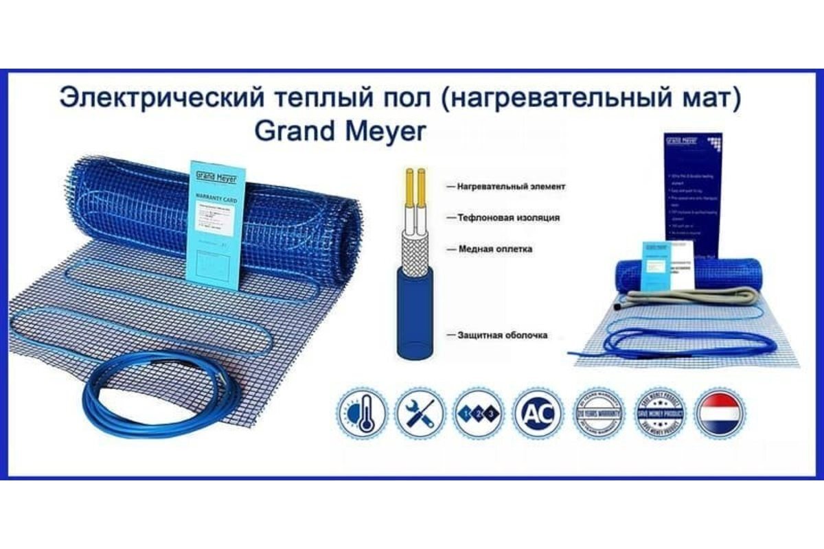 Теплый пол электрический / нагревательный мат Grand Meyer THM180-070 (7 кв.м, 180 Вт).