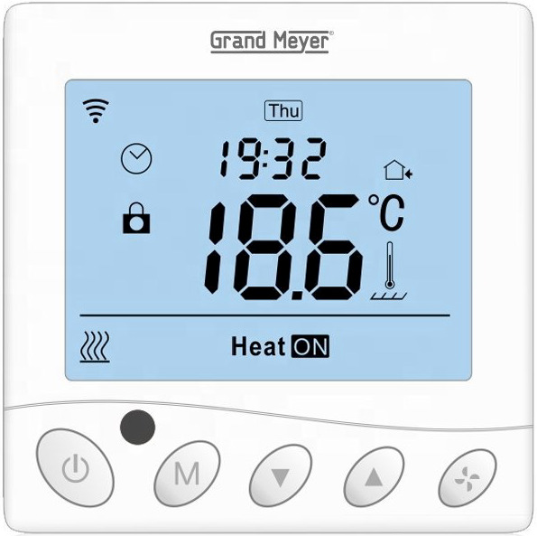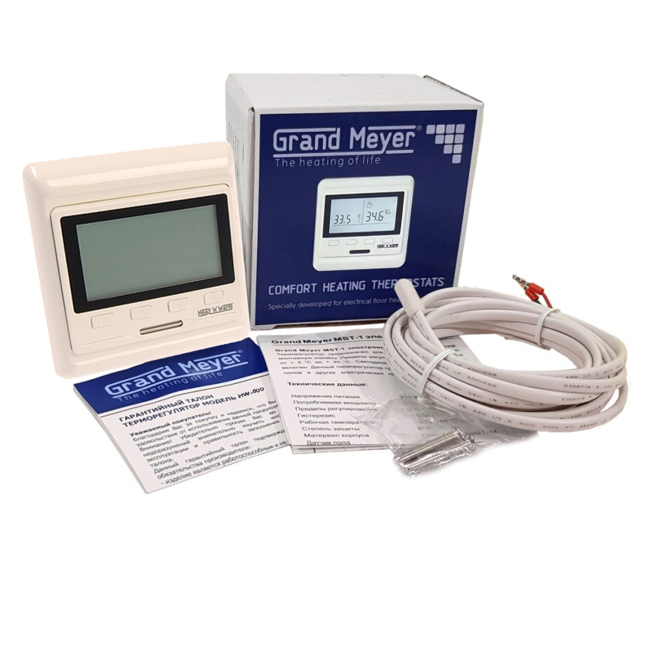 Терморегулятор/термостат Grand Meyer до 3600Вт Для инфракрасного отопления, Для теплого пола, белый