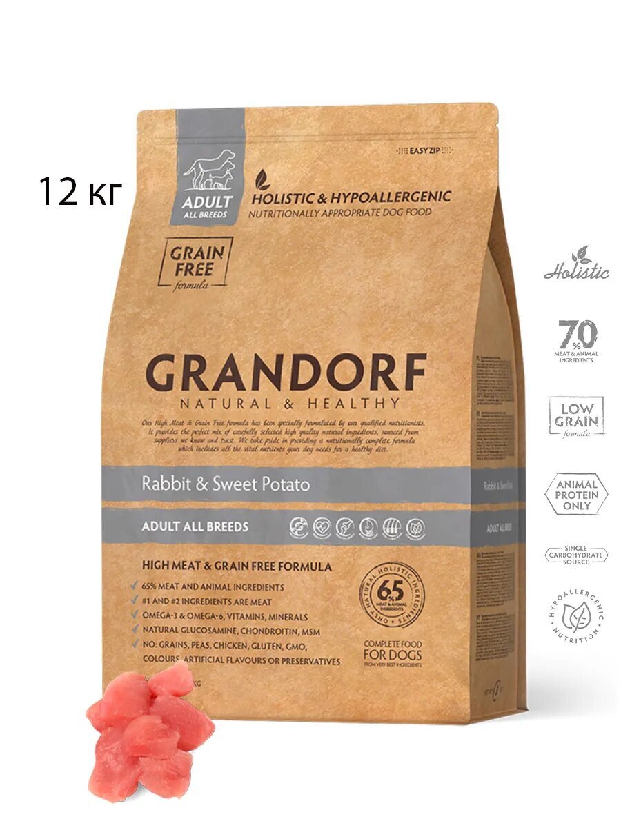 Сухой корм для собак Grandorf All Breeds Rabbit&Potato без зерновой, кролик 12 кг