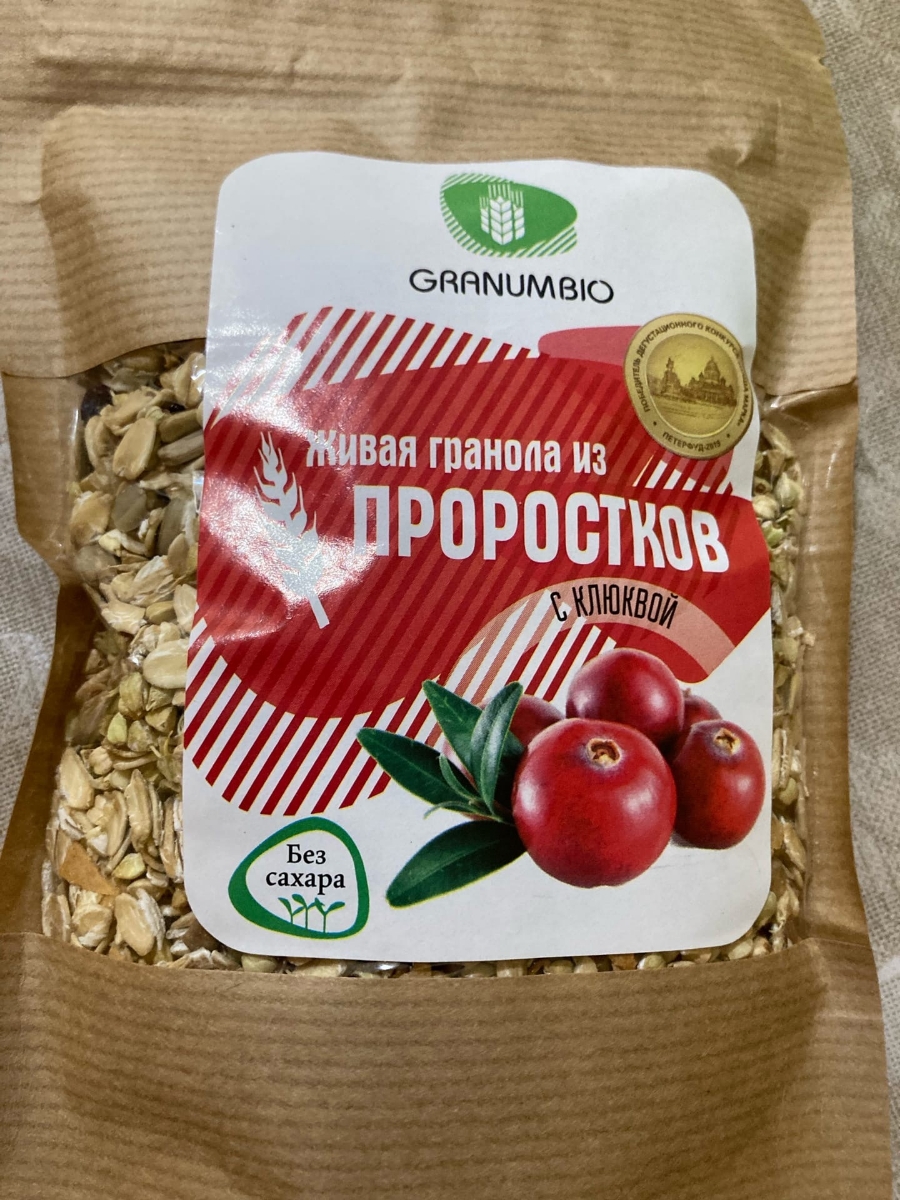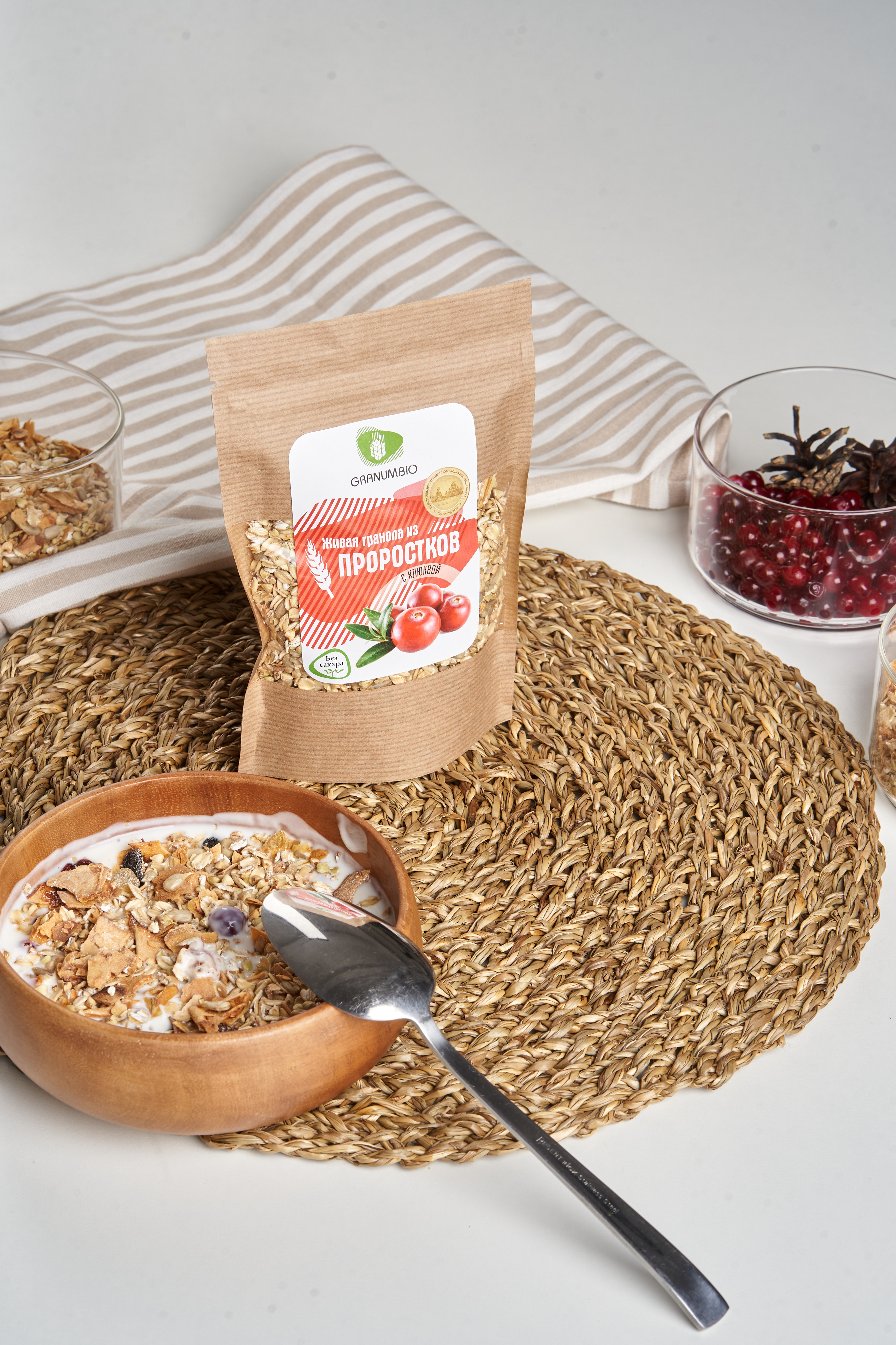 Живая гранола из проростков с клюквой / Полезный завтрак / мюсли / без сахара 130гр