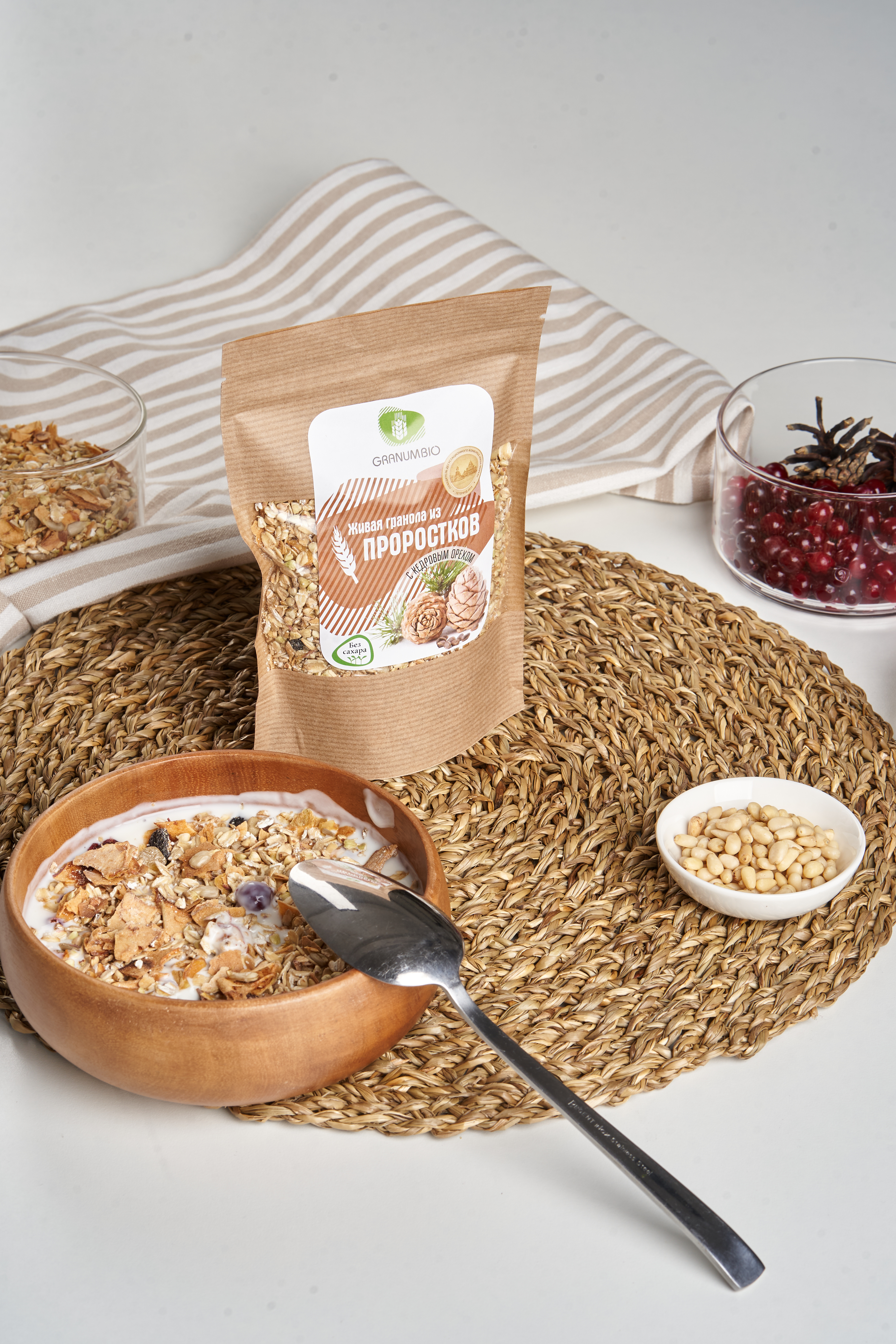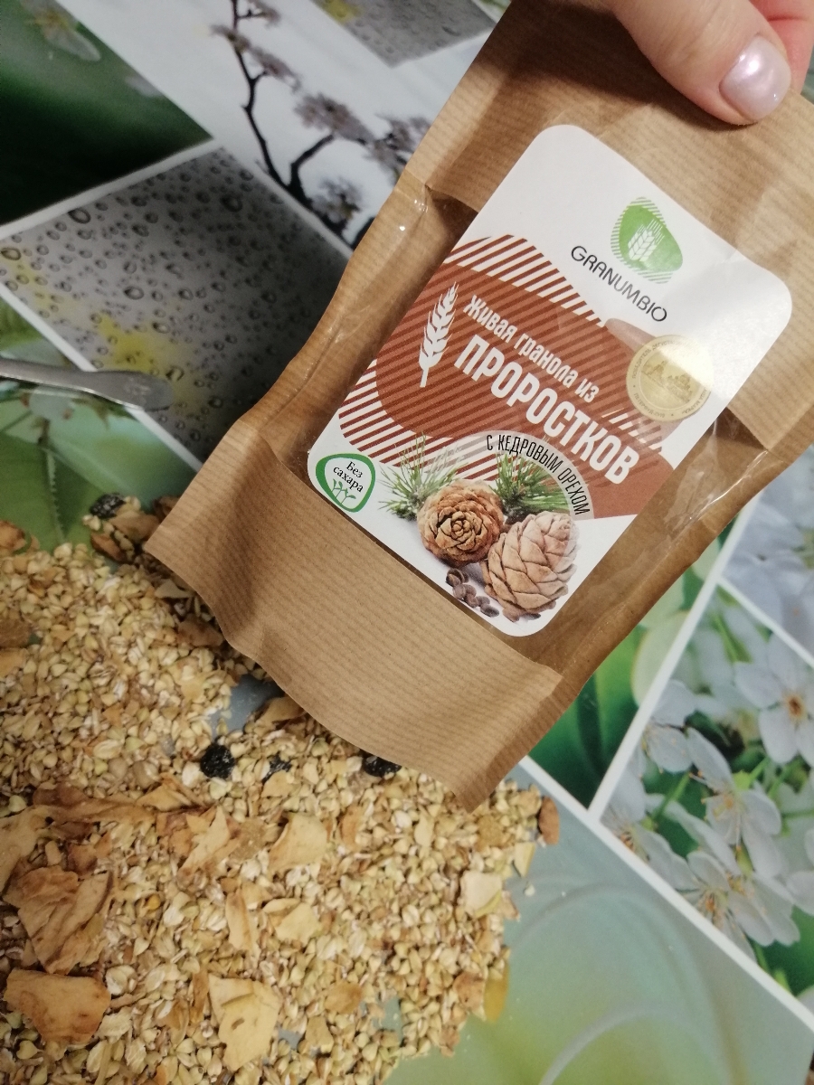 Живая гранола из проростков с кедровым орехом / Полезный завтрак / мюсли / без сахара 130гр