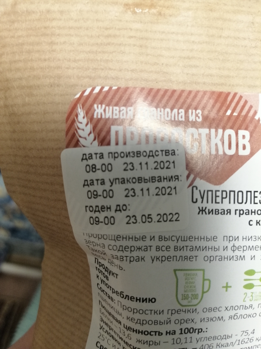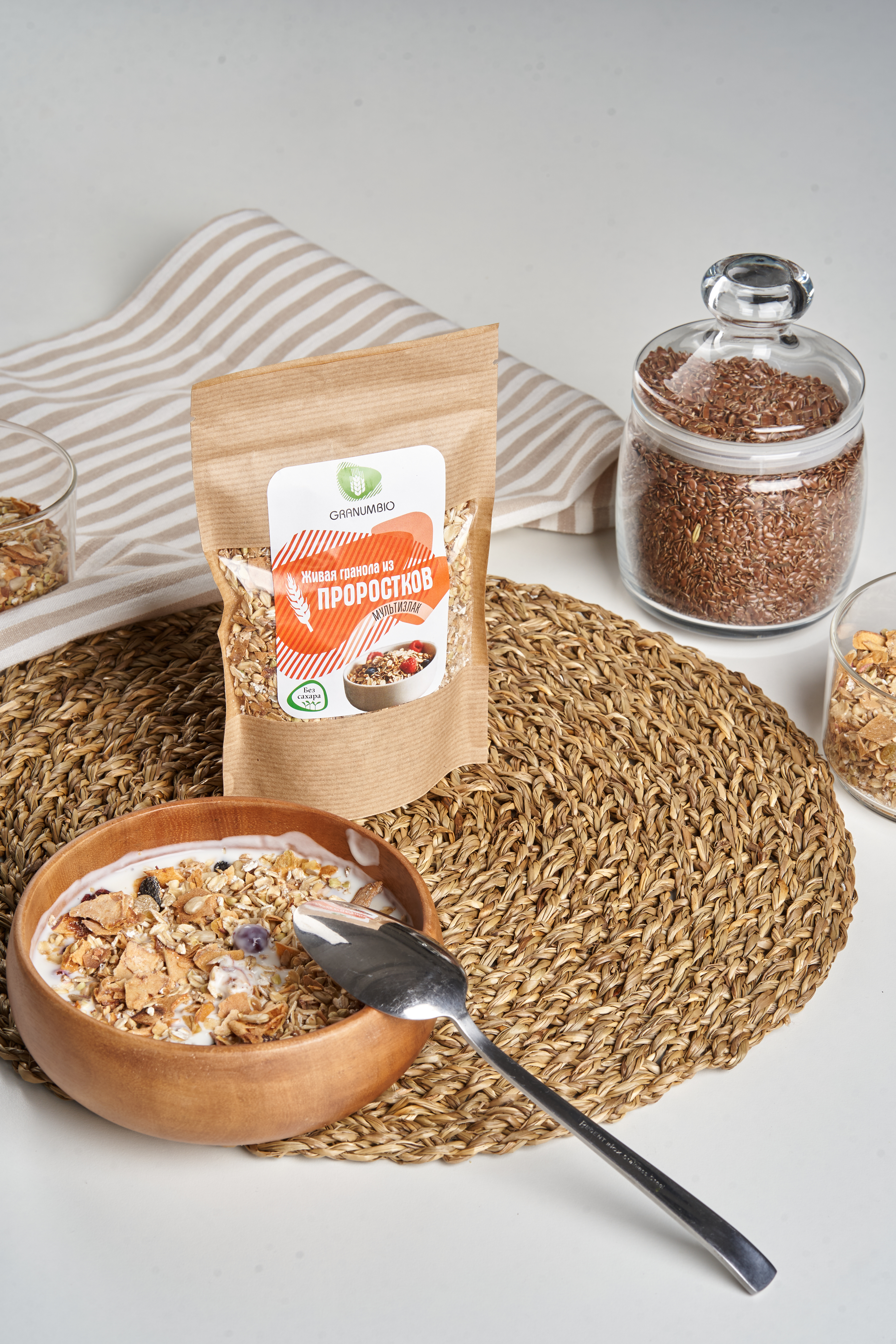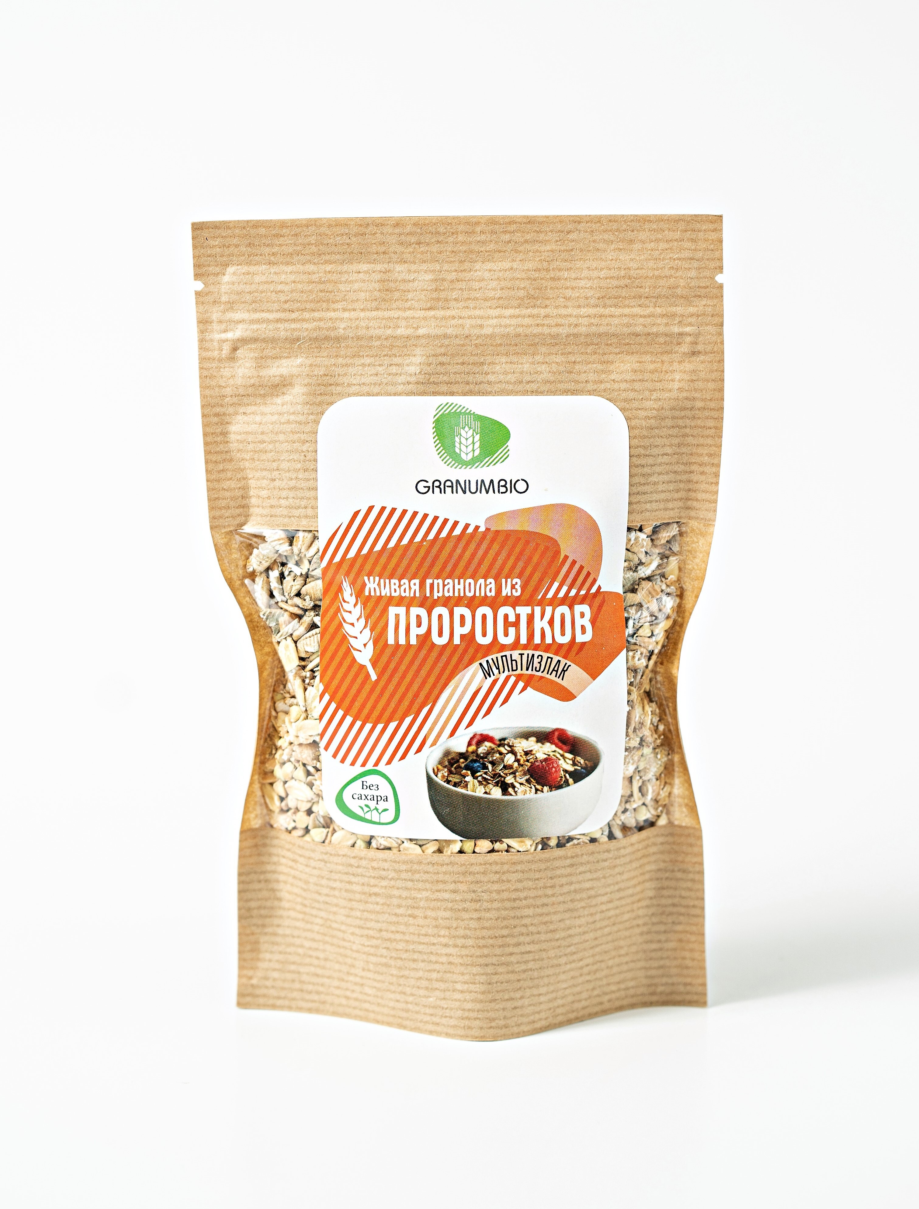 Живая гранола из проростков Мультизлак / Полезный завтрак / мюсли / без сахара 130гр
