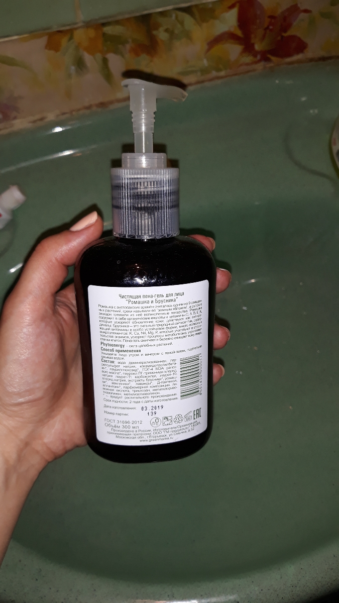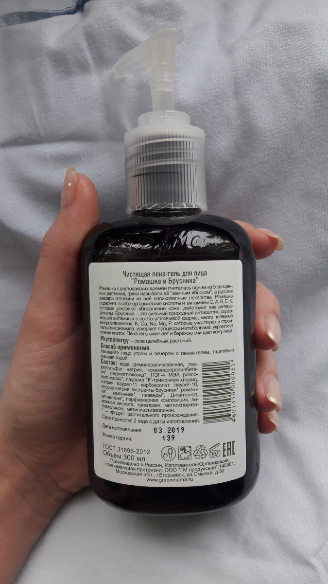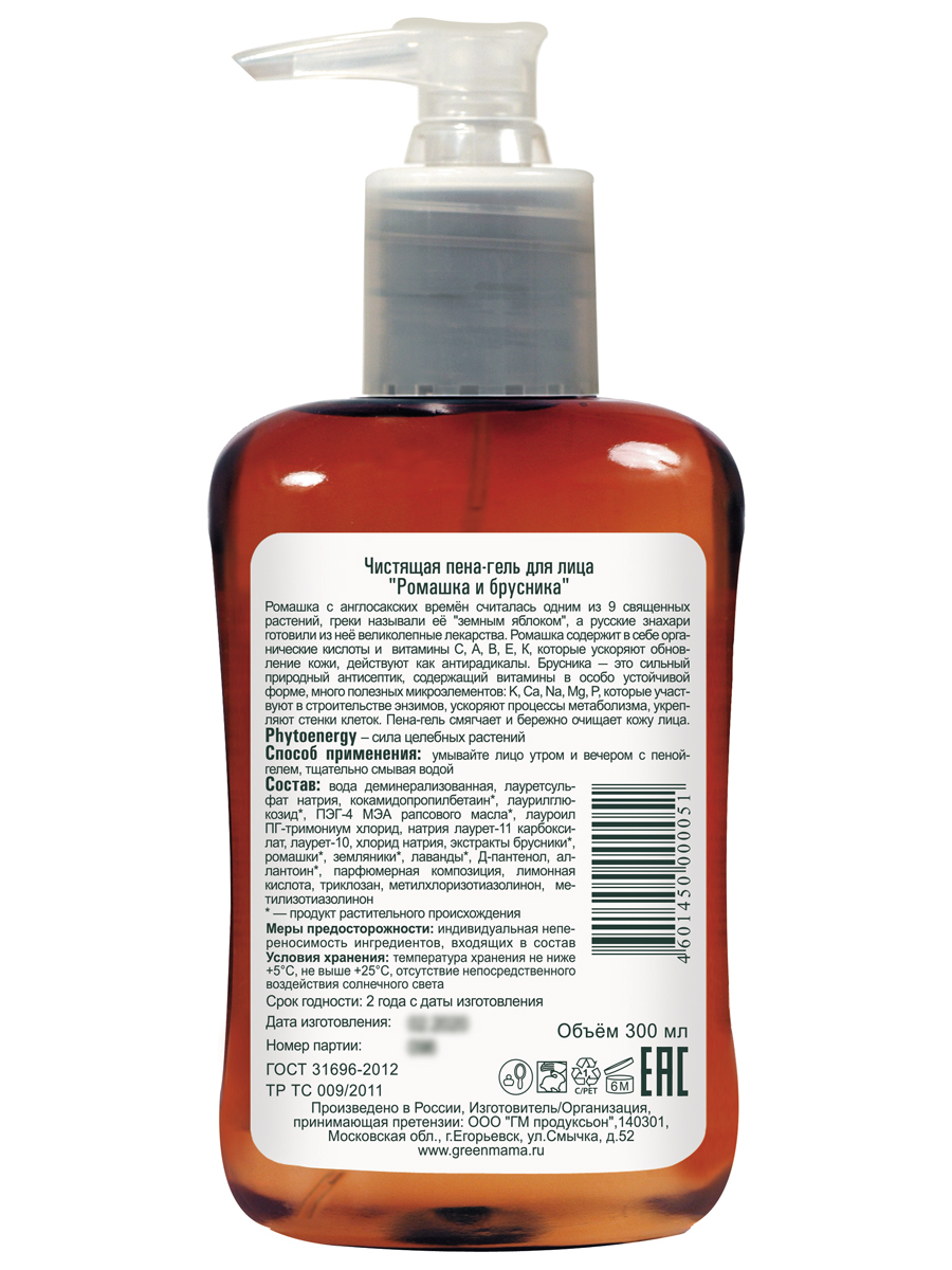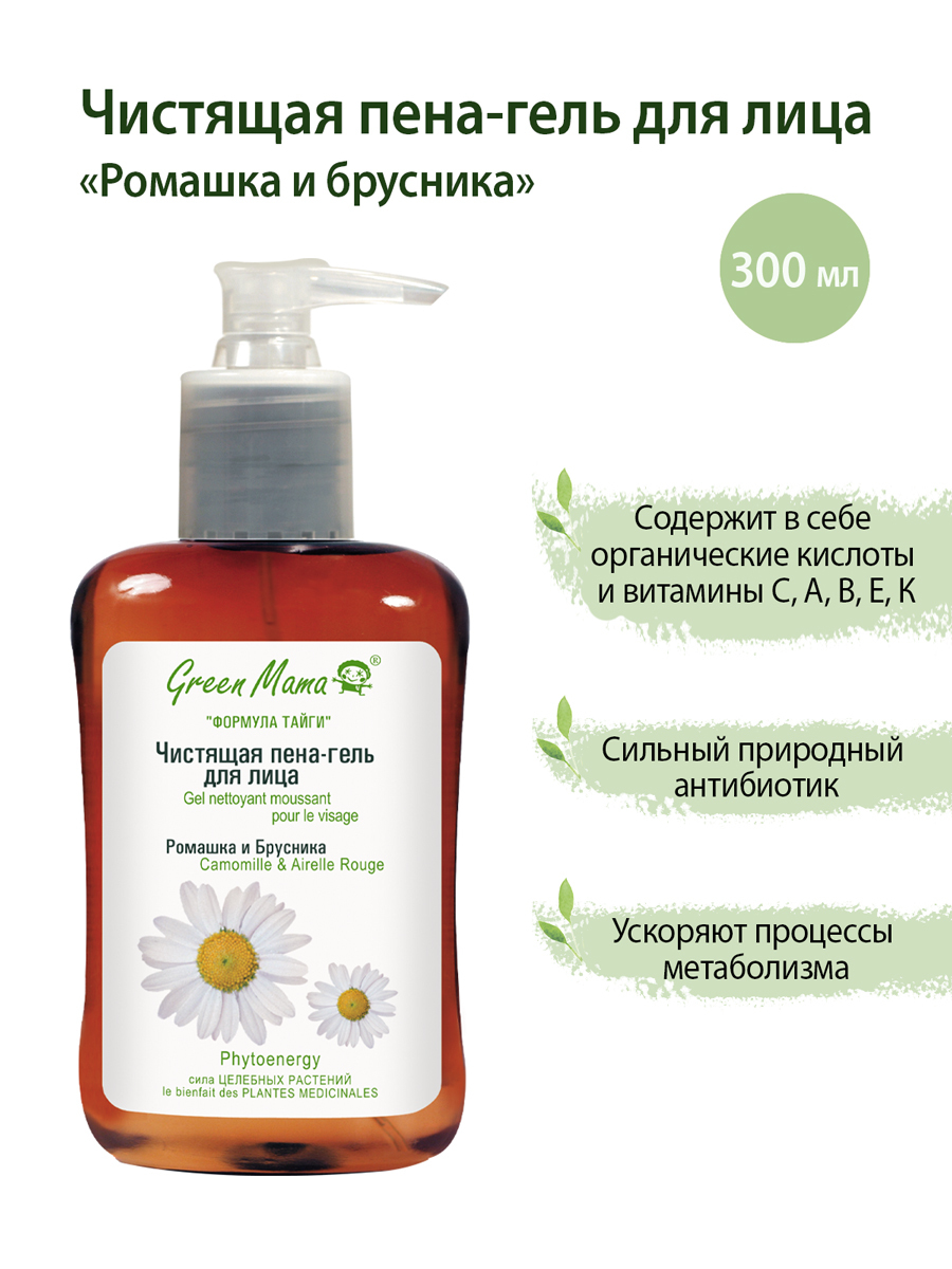 Green Mama Чистящая пена-гель для лица "Ромашка и брусника", 300 мл
