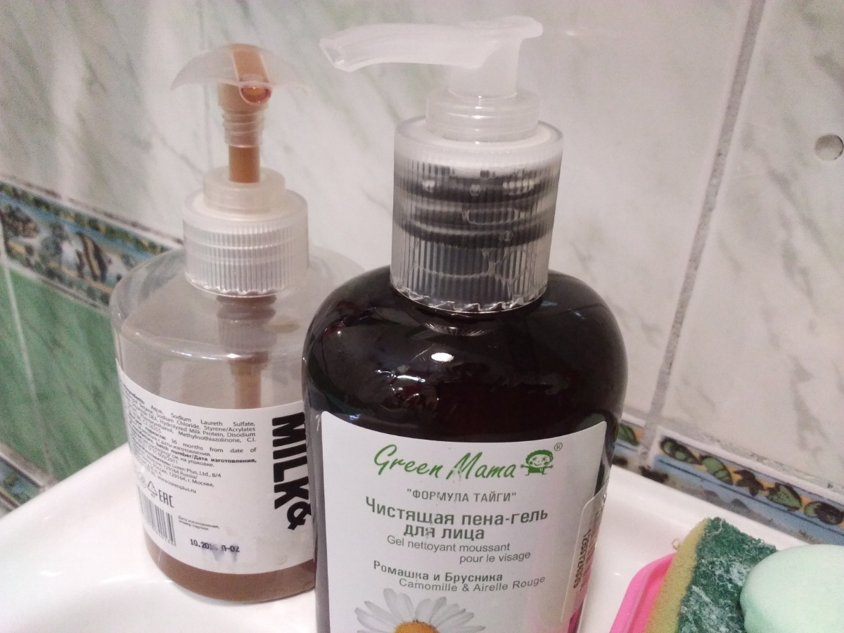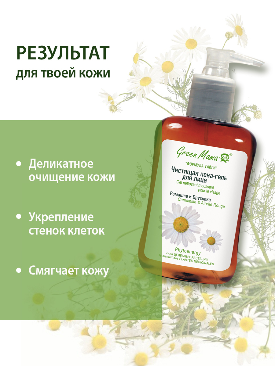 Green Mama пена-гель чистящая для лица Ромашка и брусника