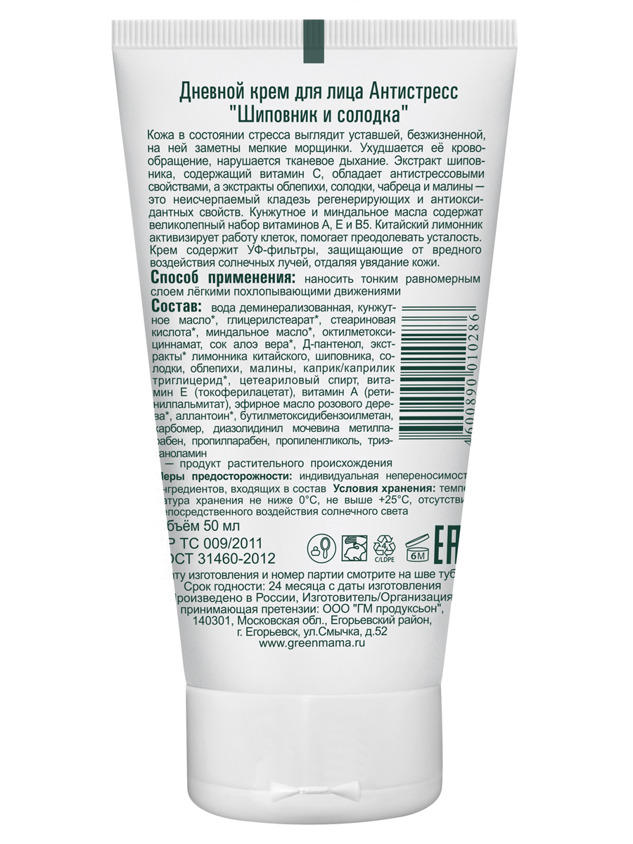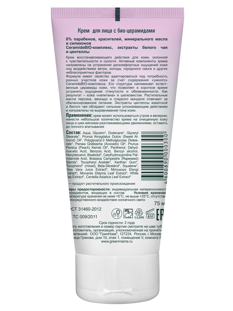 Крем для лица Green Mama дневной Брусника и череда для чувствительной кожи смешанного типа, 100 мл.