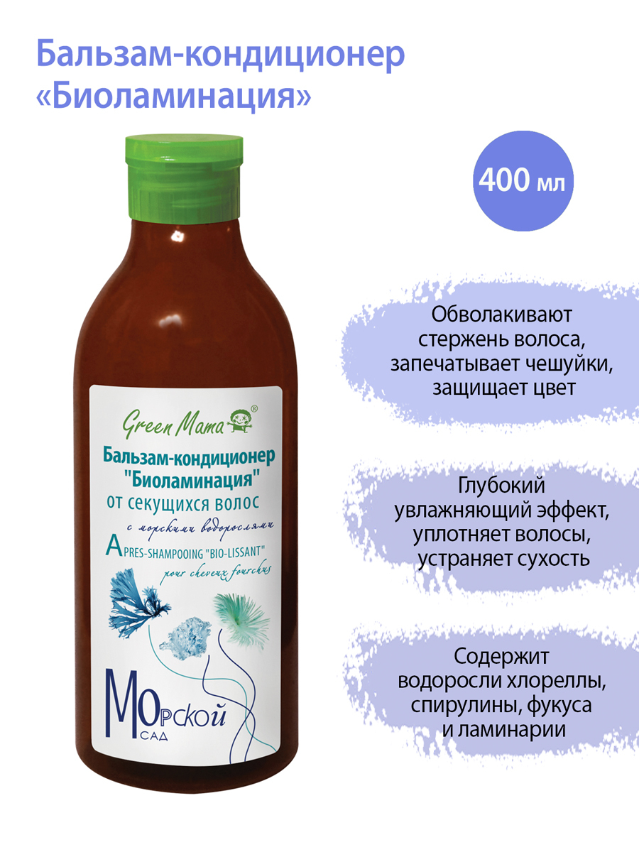 Бальзам-кондиционер Green Mama "Биоламинация" от секущихся волос, с морскими водорослями, 400 мл