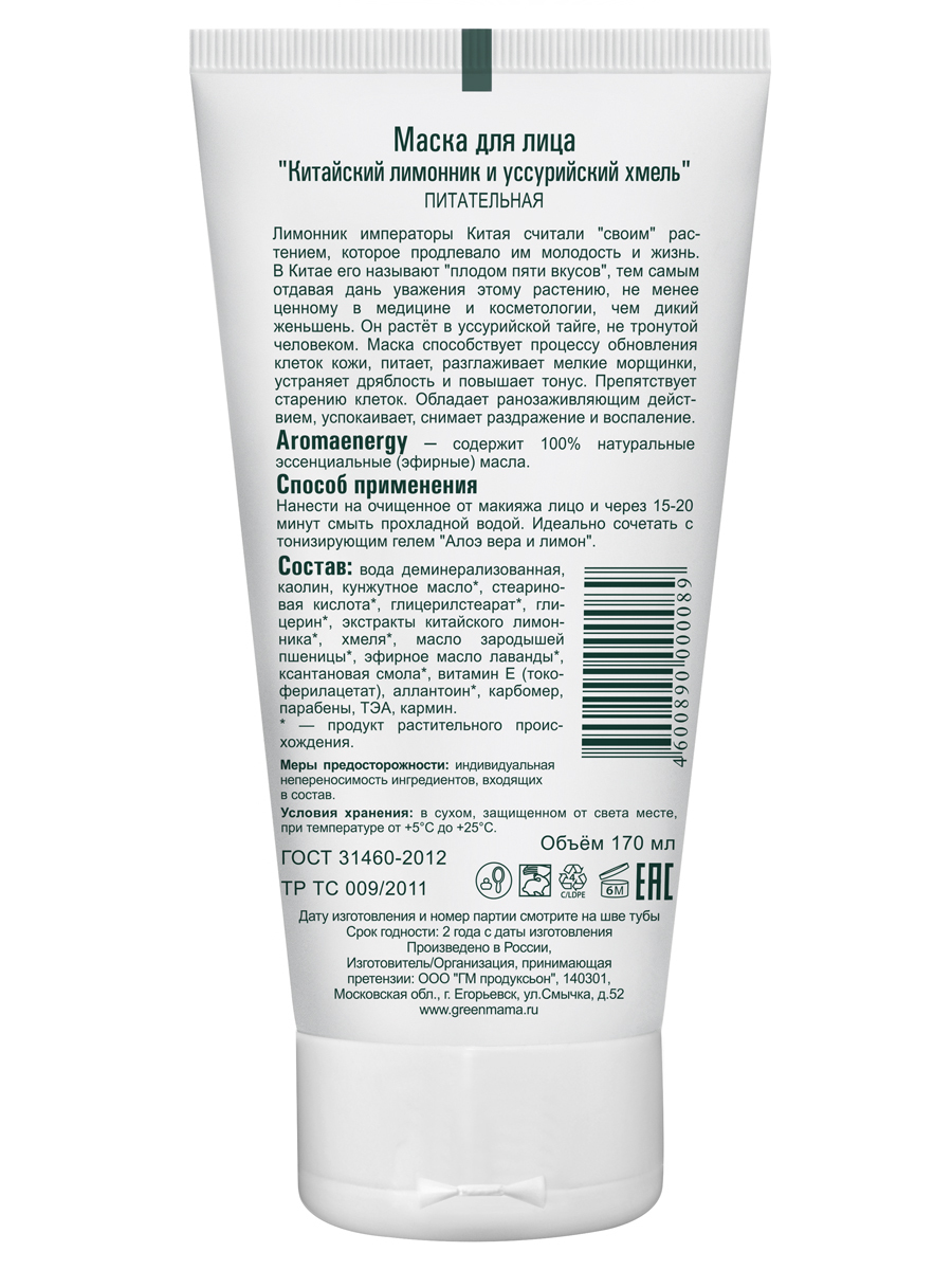 Green Mama Дневной крем для лица "Уссурийский хмель и витамин Е", 50 мл