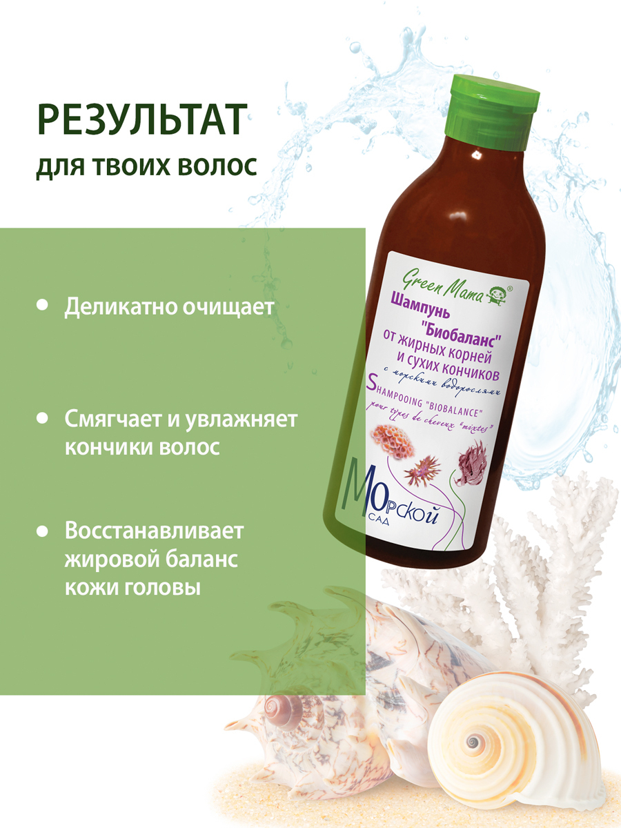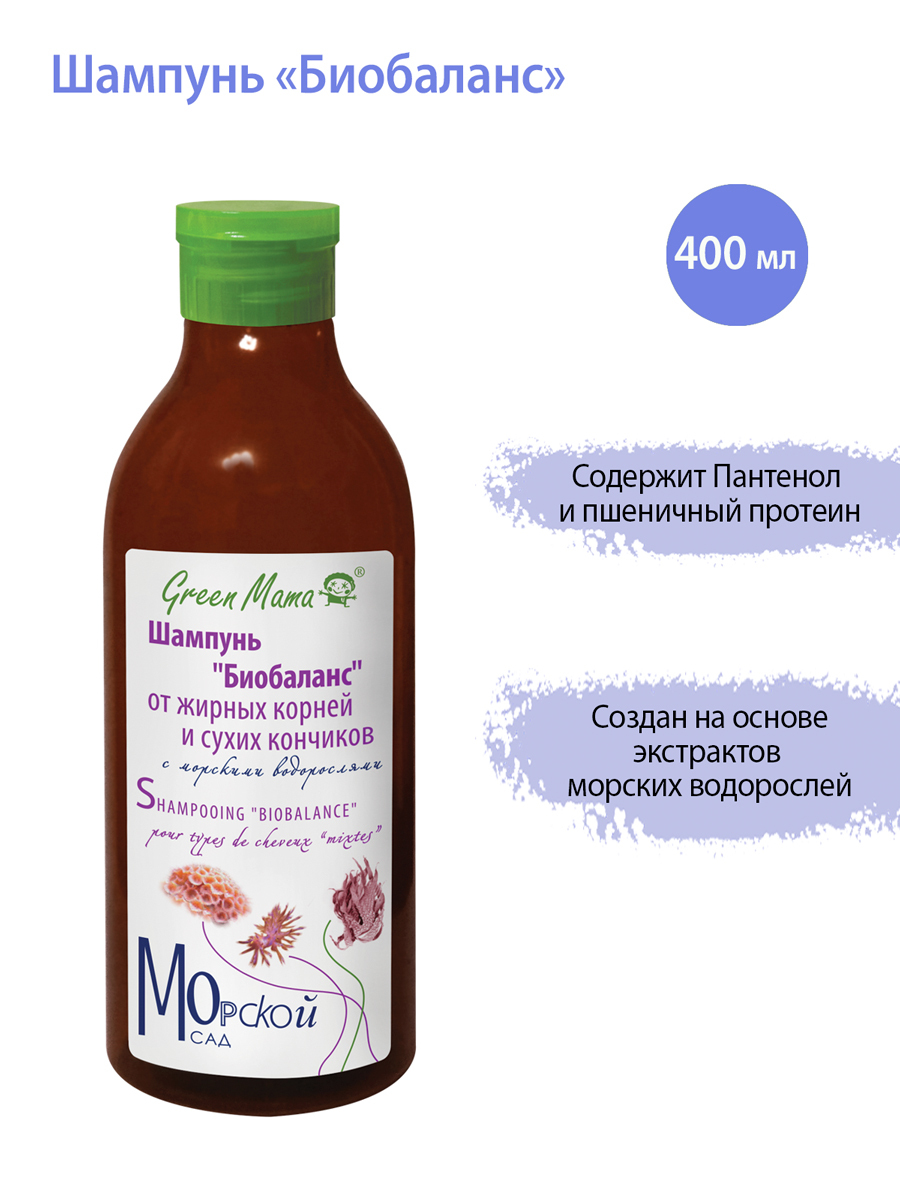 Green Mama Шампунь "Биобаланс" от жирных корней и сухих кончиков, с морскими водорослями, 400 м