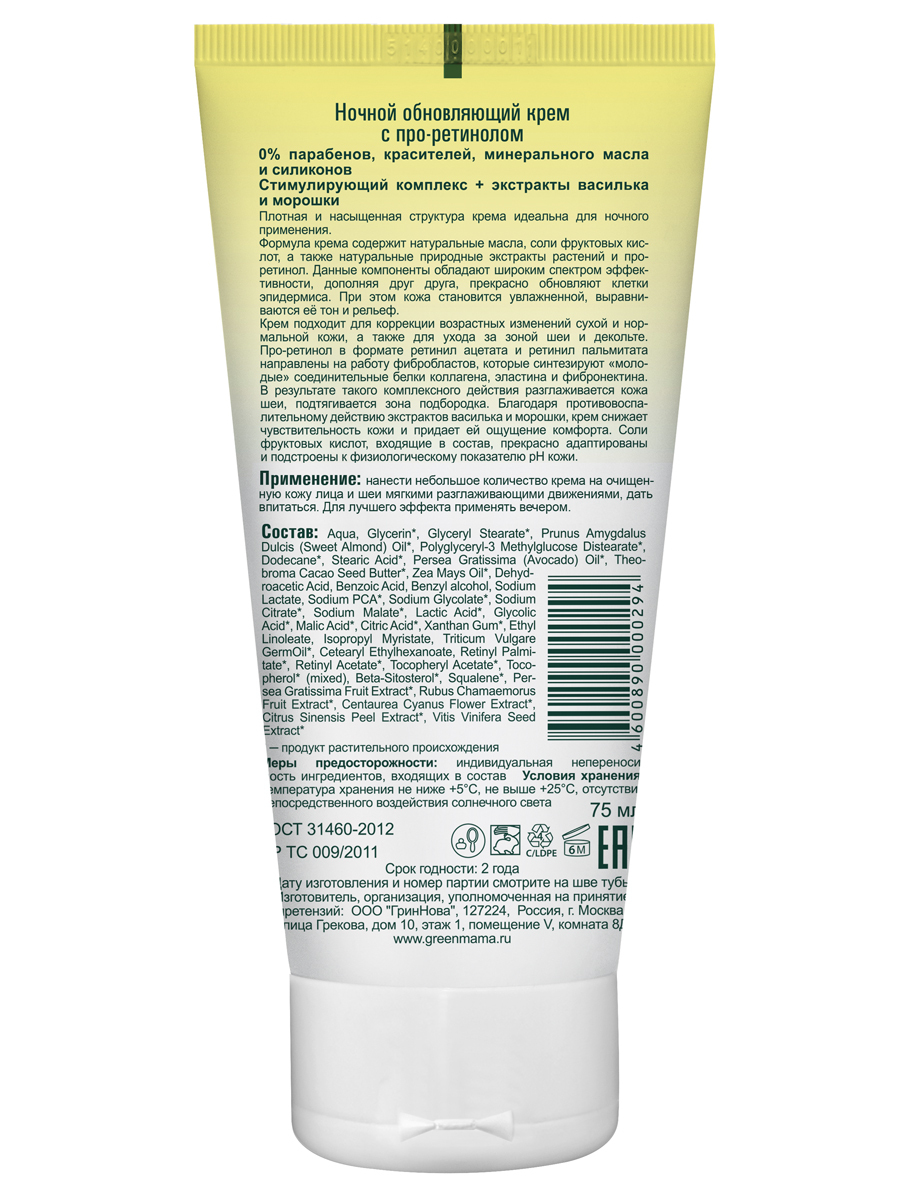 Green Mama Крем "Пшеница и василек", для зрелой кожи в области глаз, ночной, питательный , 50 мл