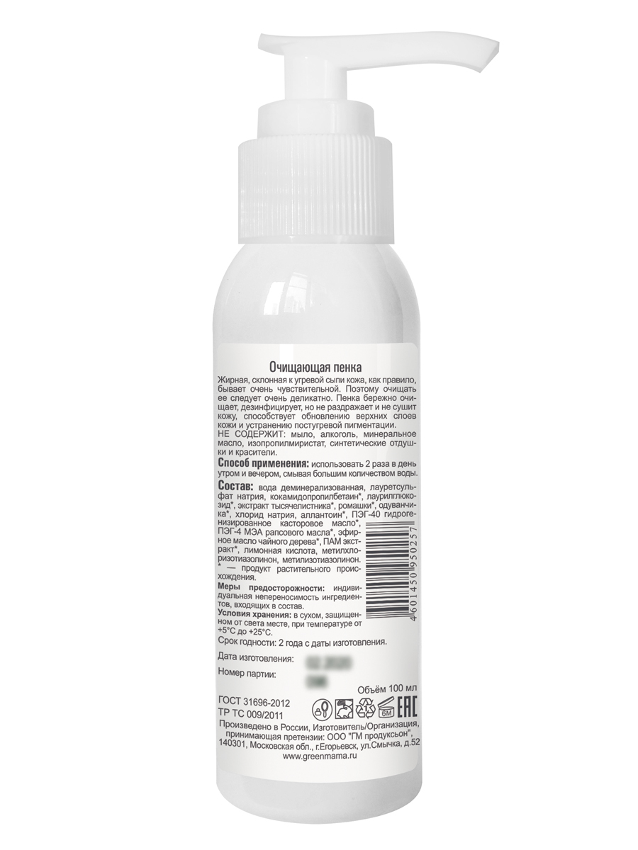 Green Mama Пенка очищающая для проблемной кожи, 100 мл