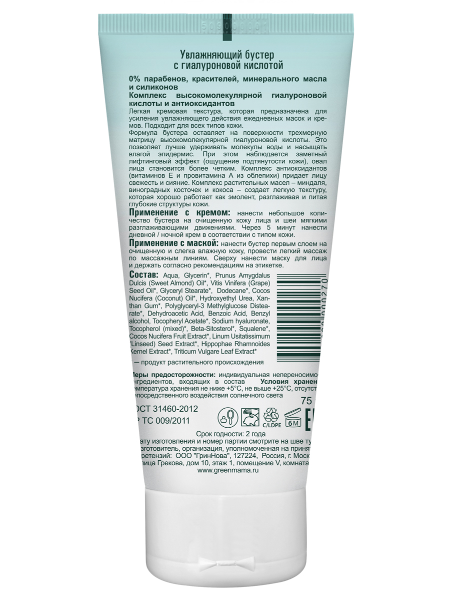 Увлажняющий бустер с гиалуроновой кислотой Green Mama 75 мл