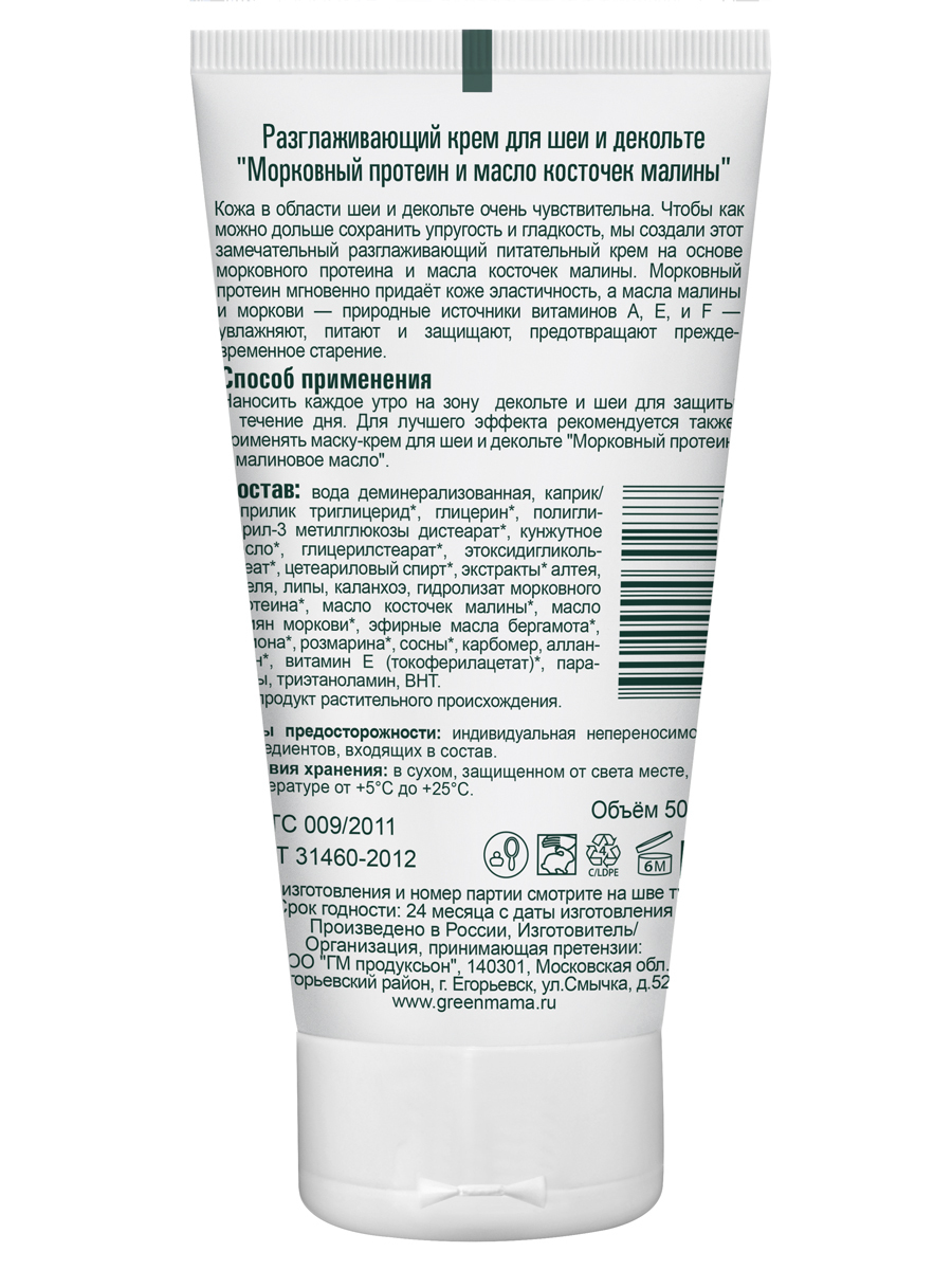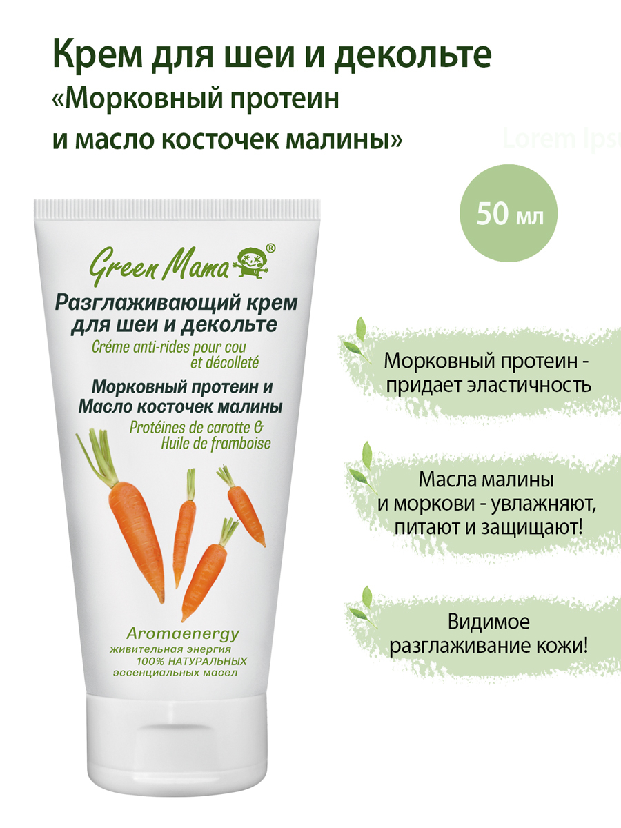 Разглаживающий крем для шеи и декольте "Морковный протеин и масло косточек малины", 50 мл