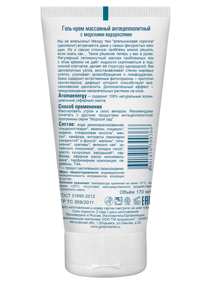 Gree Mama Гель крем массажный антицеллюлитный с морскими водорослями