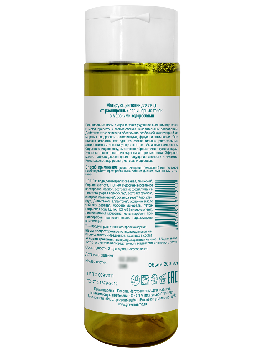 Green mama ТОНИК ДЛЯ ЛИЦА ДЛЯ СУХОЙ И НОРМАЛЬНОЙ КОЖИ 300 МЛ