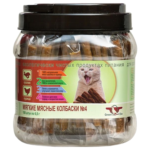 Лакомство для кошек Green Qzin Подвижность №4 Мягкие мясные колбаски Кролик и Курица