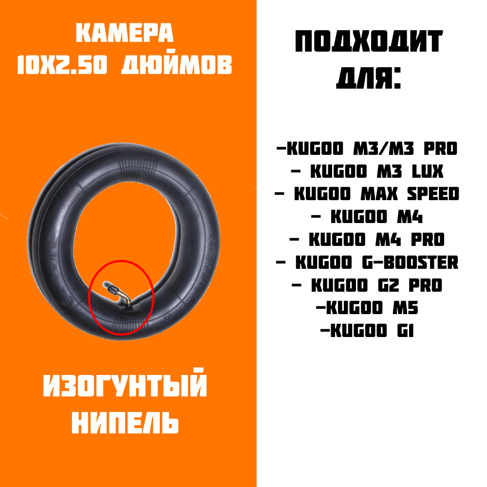 Камера для электросамоката Kugoo MaxSpeed 10x2.50 дюймов (изогнутый ниппель)