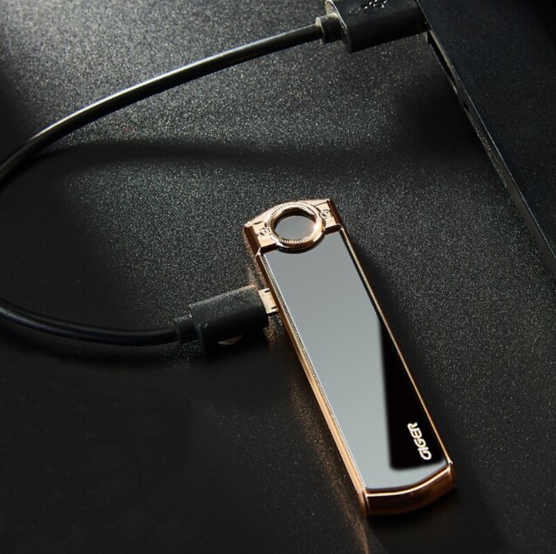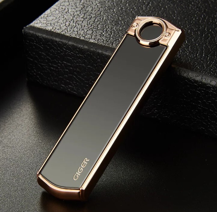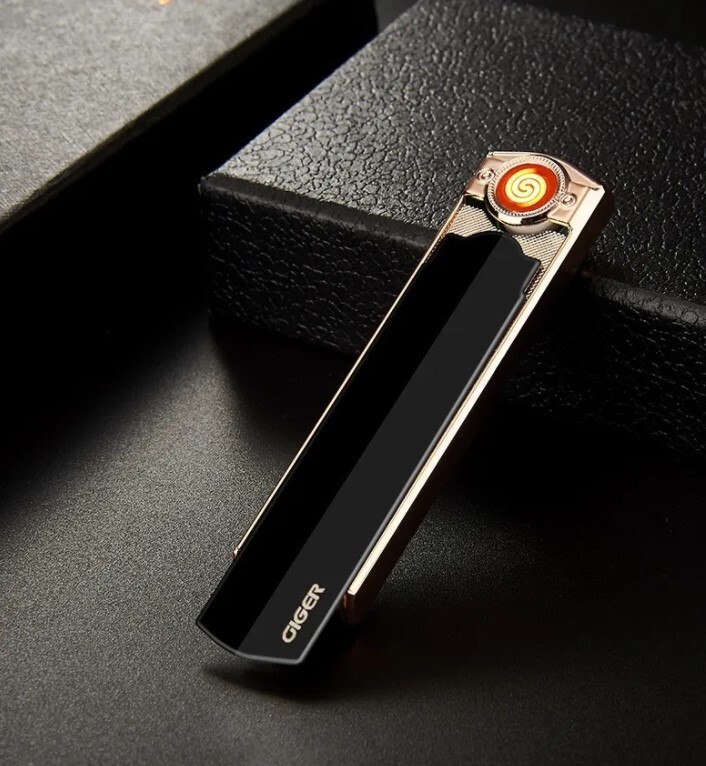 электронная металлическая USB зажигалка слайдер со спиралью. Цвет: черный, Grina
