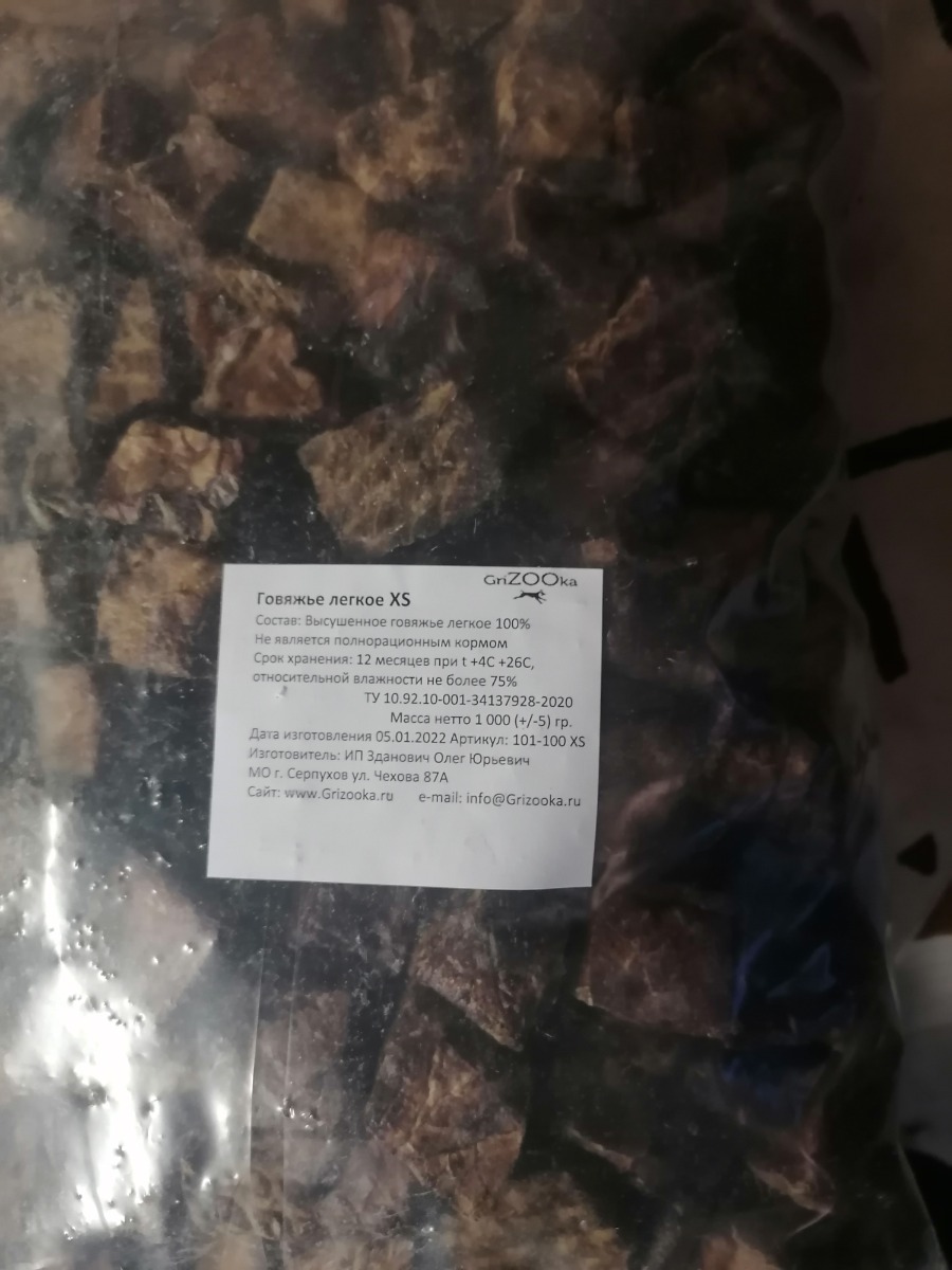 Лакомство для собак 100 % натуральное GriZOOka говяжье легкое 2 кг. мягкая упаковка