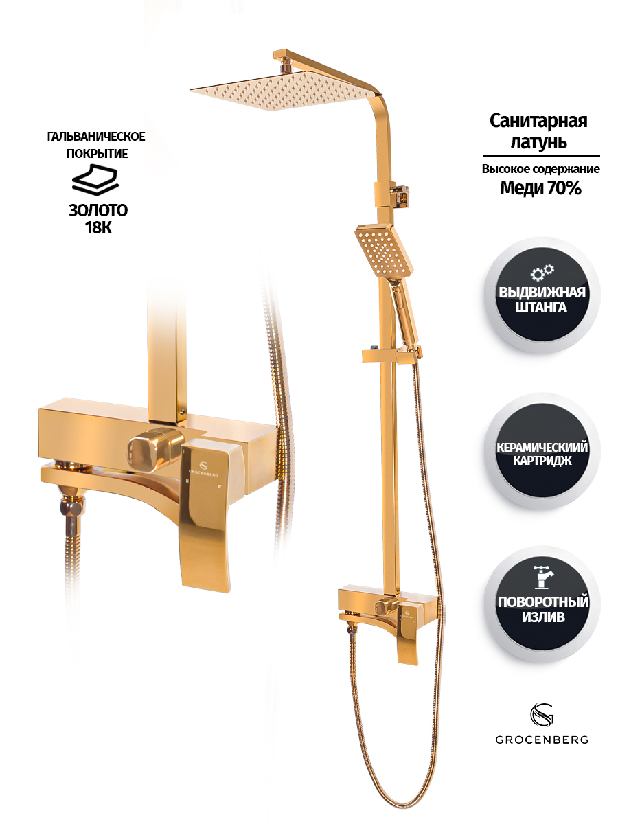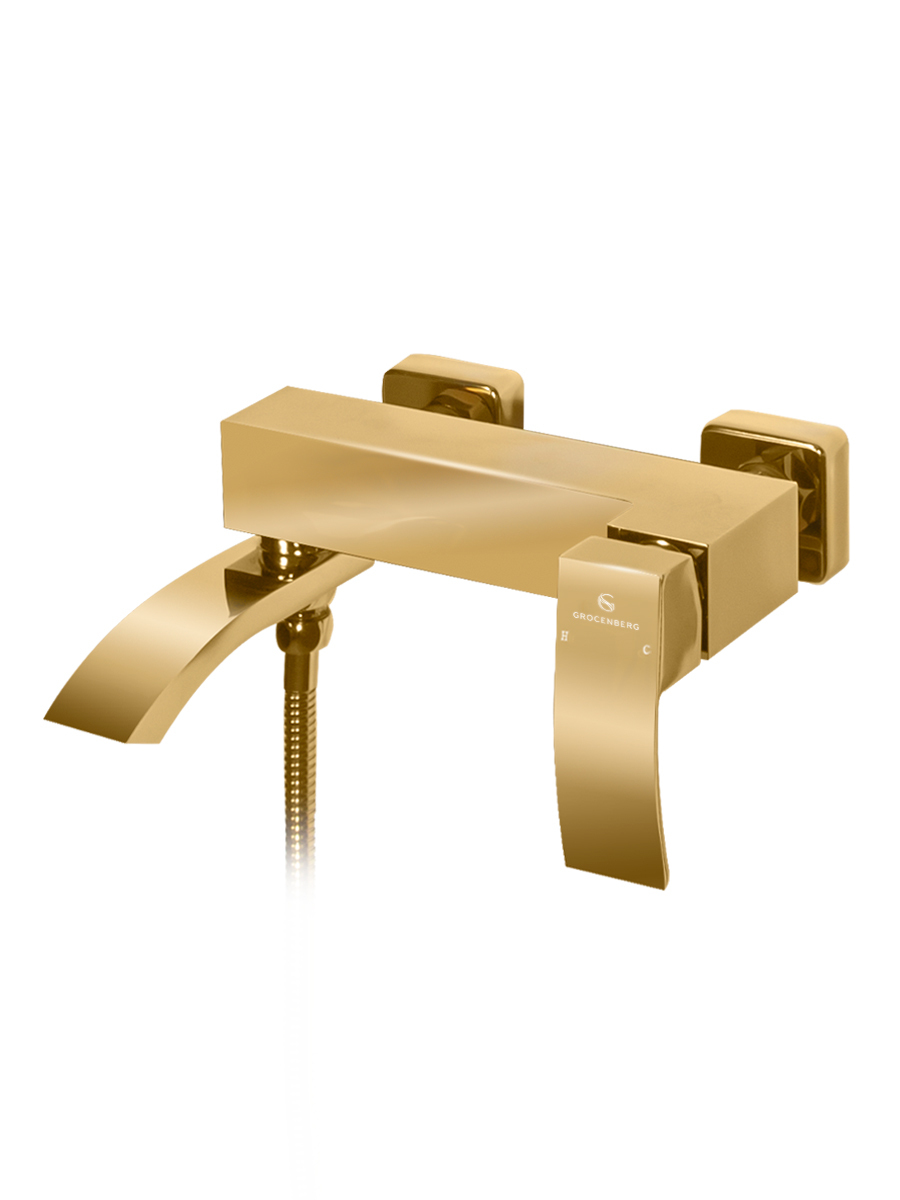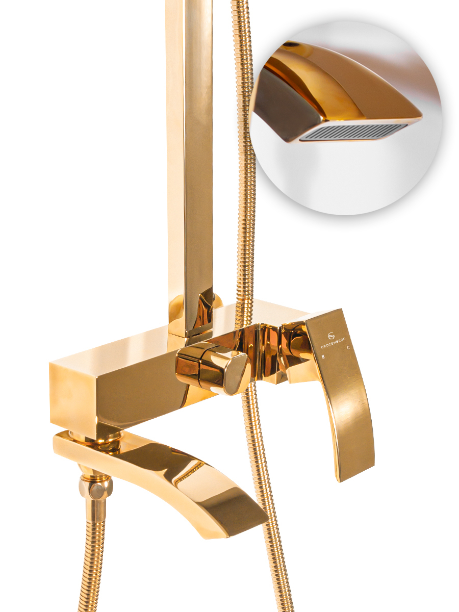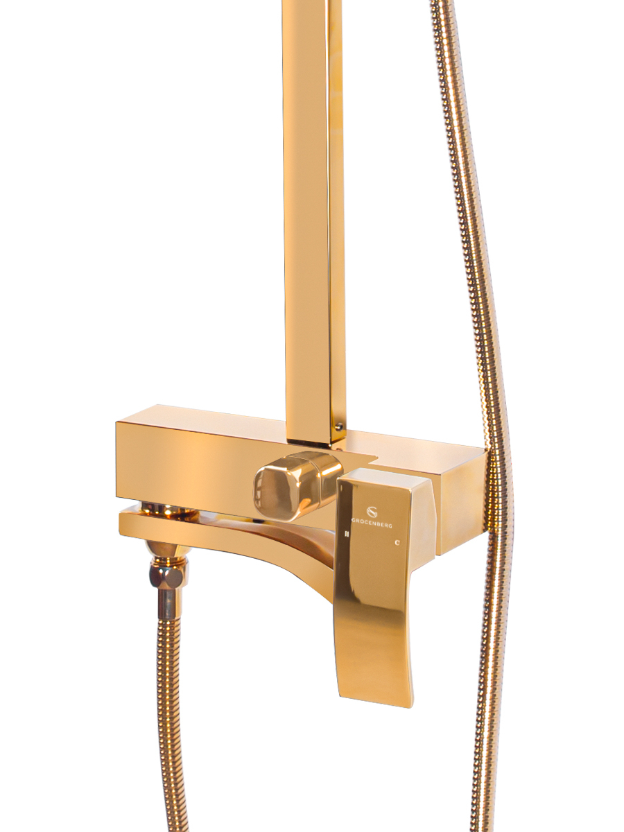 Cмеситель "Groсenberg" из латуни для ванны с ручным квадратным душем (золото)