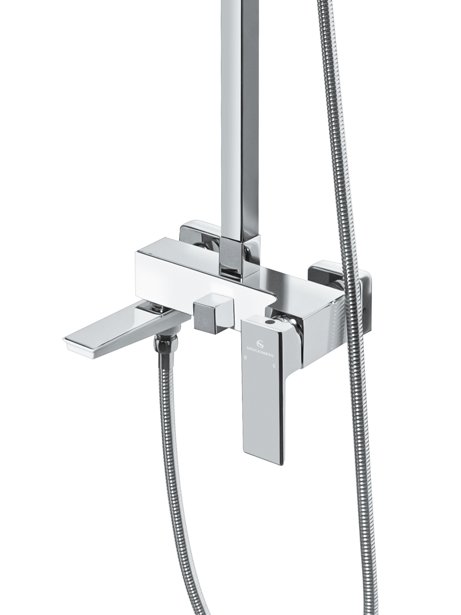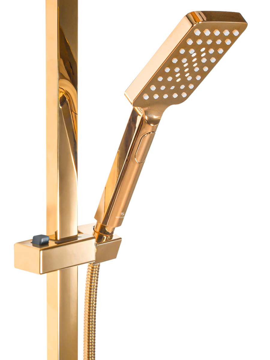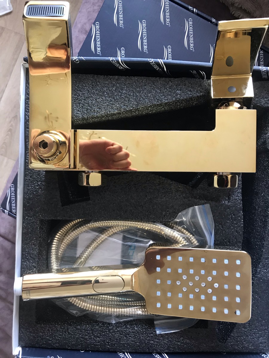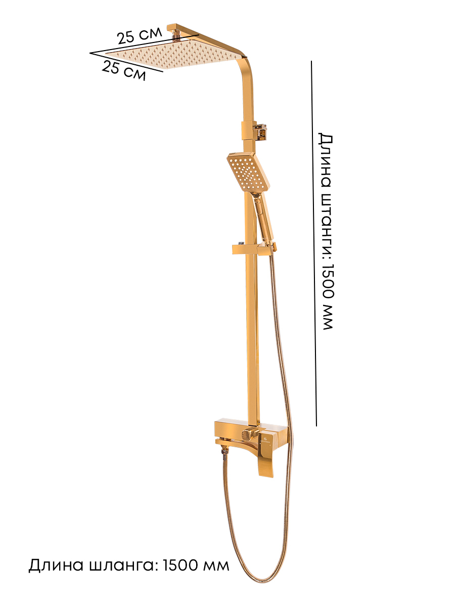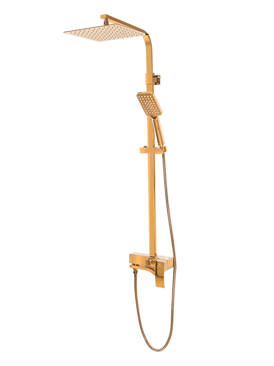 Cмеситель "Groсenberg" из латуни для ванны с ручным квадратным душем (золото)