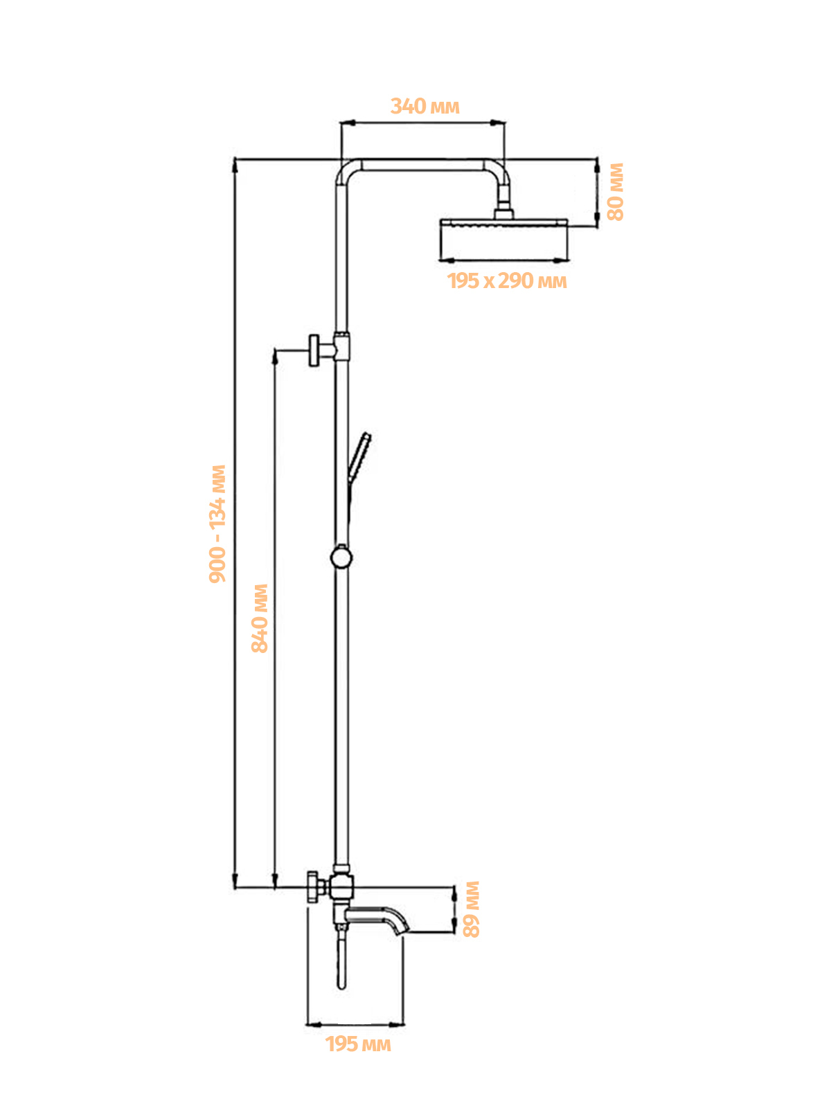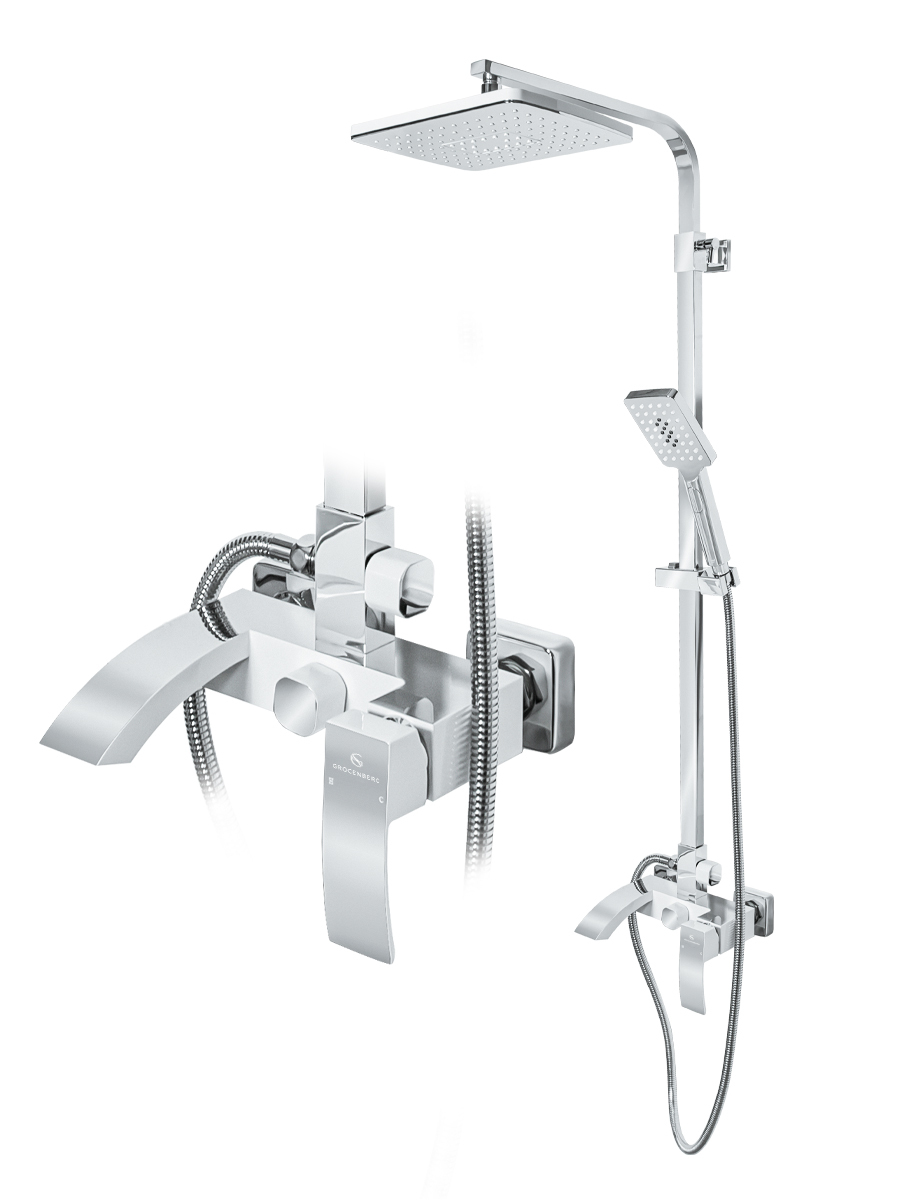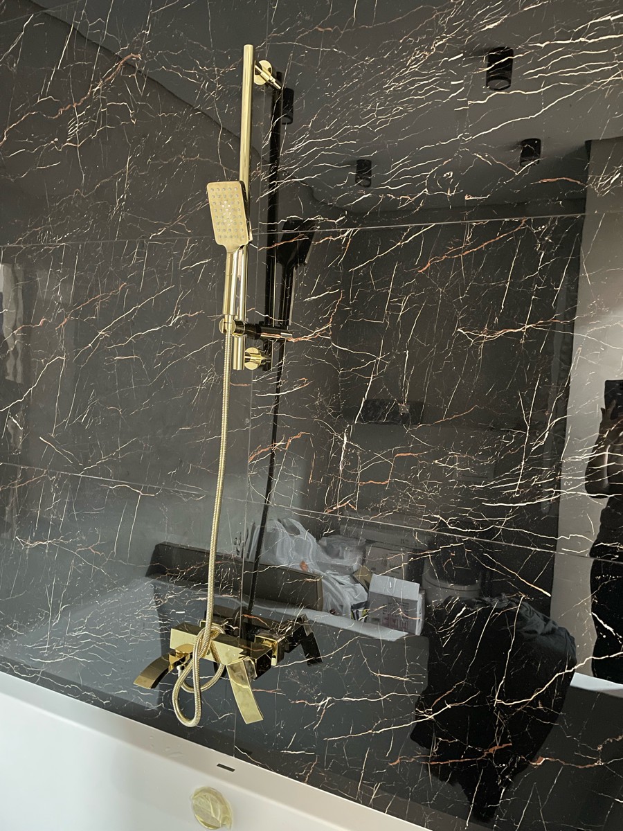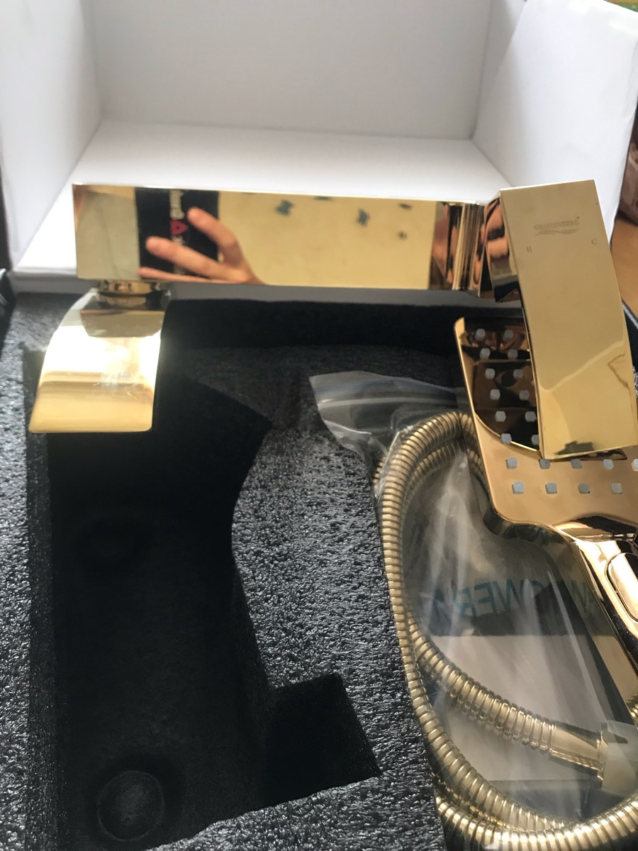Cмеситель "Groсenberg" из латуни для ванны с ручным квадратным душем (золото)