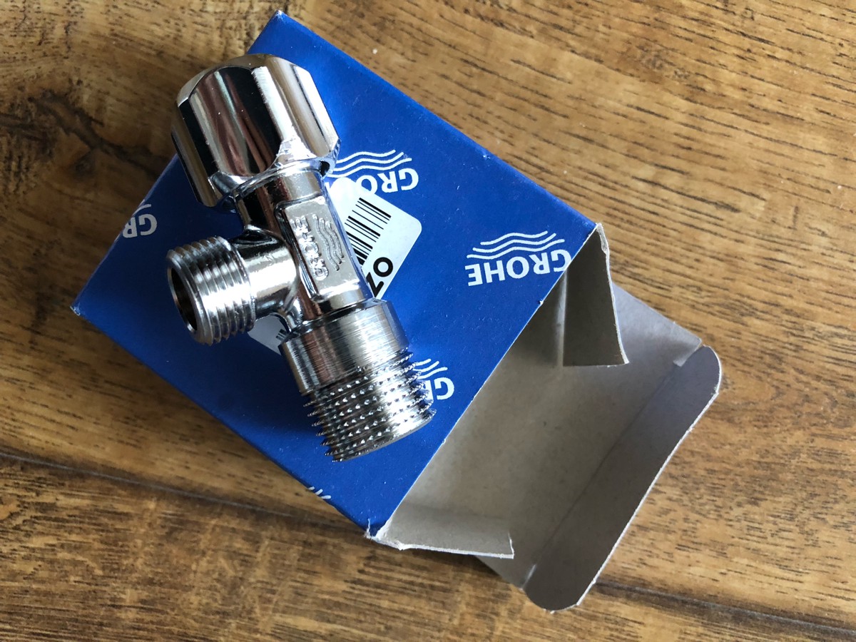 Вентиль угловой GROHE "Eurosmart", с металлической розеткой. 22018000