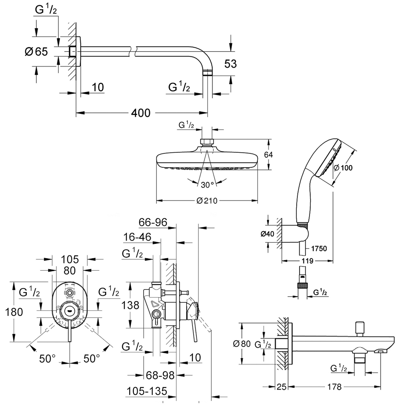 Душевая система Grohe Bau Classic с изливом для ванны, хром