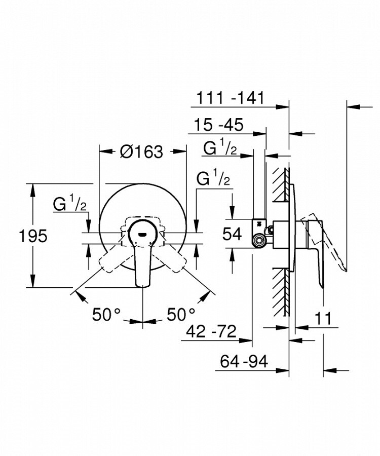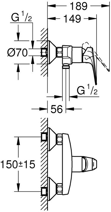 Смеситель для душа GROHE BauFlow, однорычажный, хром 23632000
