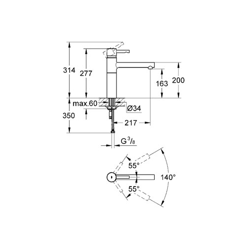 Однорычажный смеситель для раковины (умывальника) Grohe Europlus 33155002