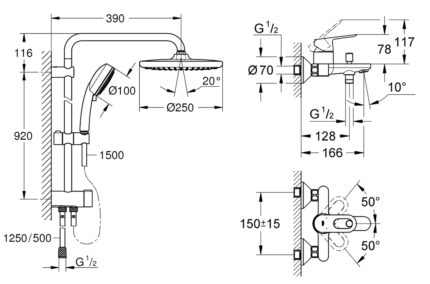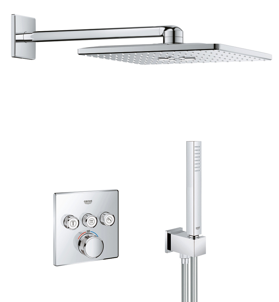 Душевая система Grohe Rainshower SmartActive Cube с тропическим душем и термостатом, Германия