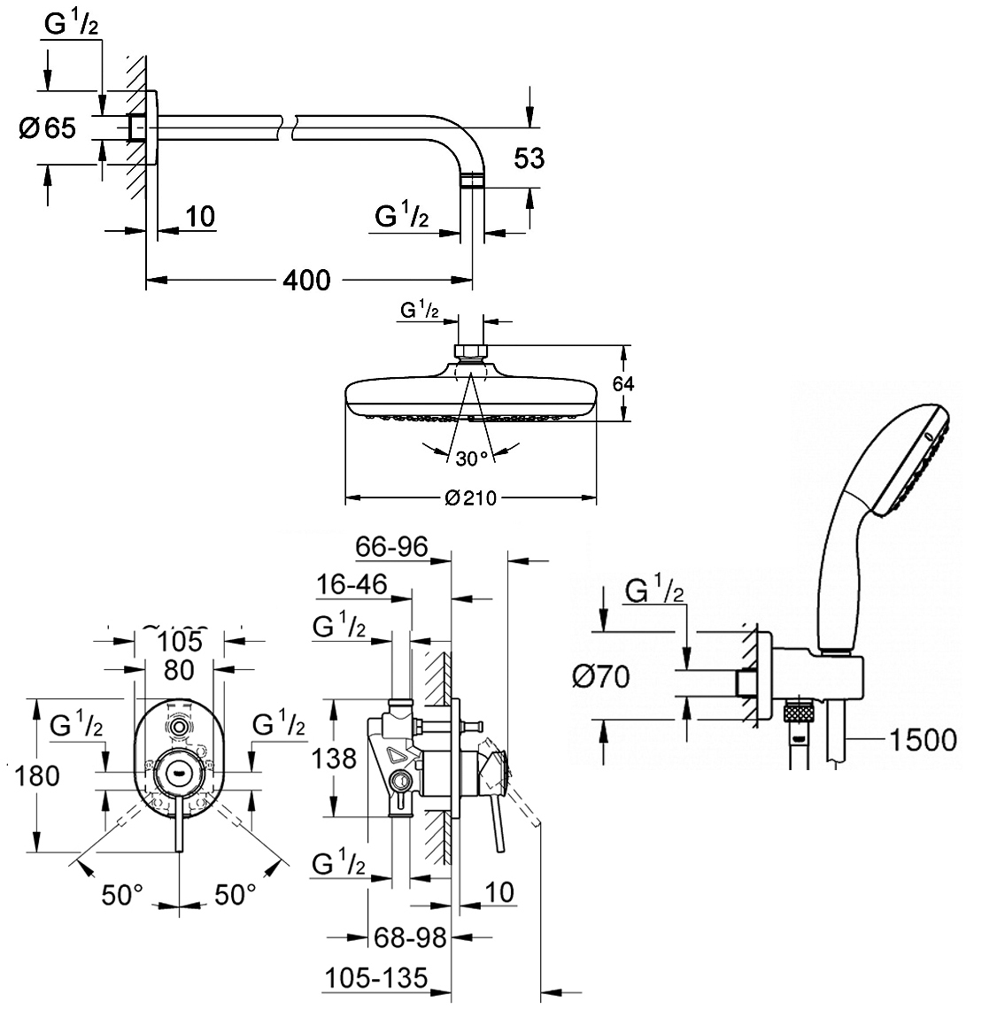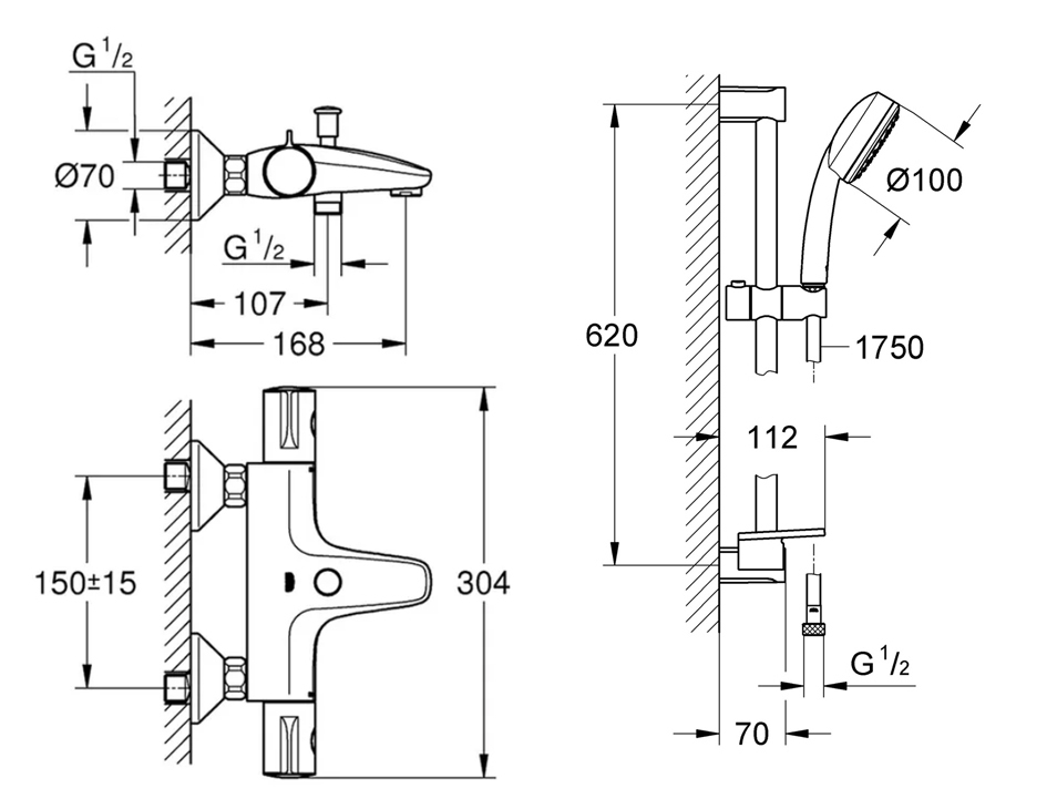 Термостат для ванны Grohe Grohtherm 800 с душевым гарнитуром