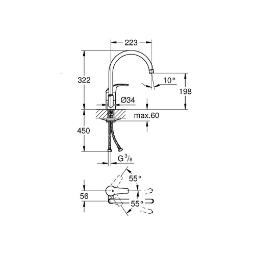 Однорычажный смеситель для кухни (мойки) Grohe Eurosmart 32542