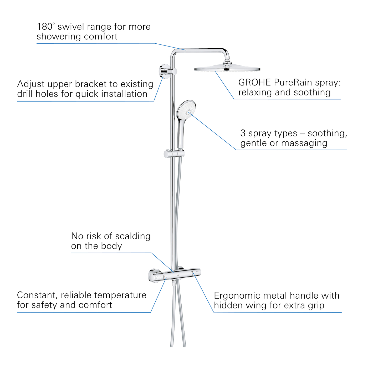 Душевая система с тропическим душем и термостатом Grohe Euphoria 310 Duschsystem, Германия